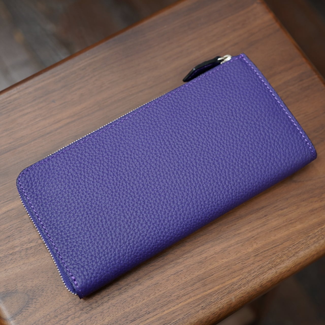 シュランケンカーフを素材に用いることで、手触りがよく、美しい発色を愉しめるだけでなく、水気や傷を極端に気にすることなく、綺麗に愉しんでいただける長財布です。