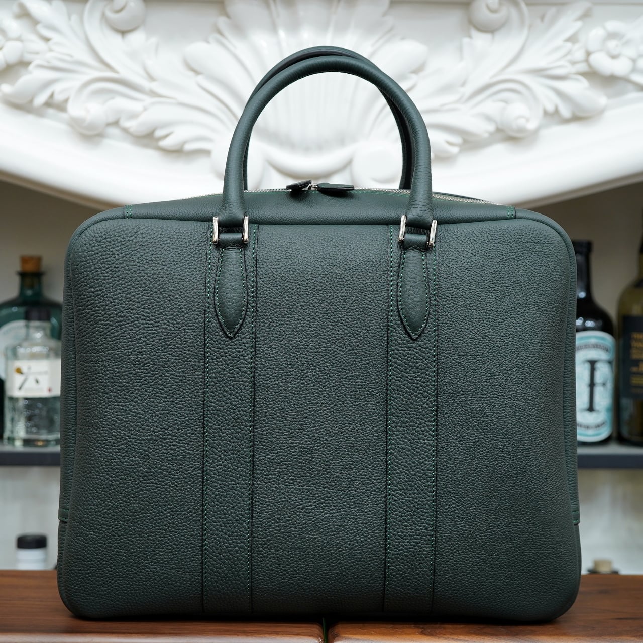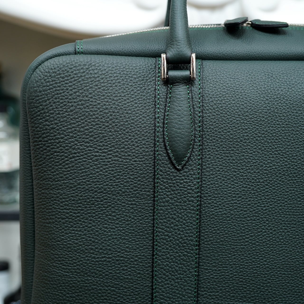 短ハンドルは肩掛けはできませんが、その分シュっとスタイリッシュな空気がまし、ビジネススタイルの雰囲気が強く出てきます。