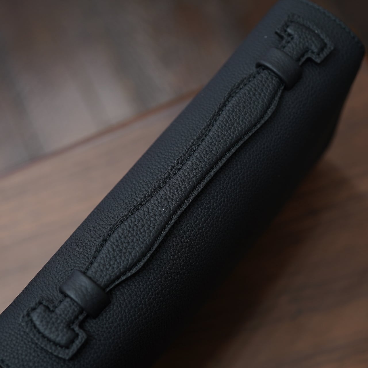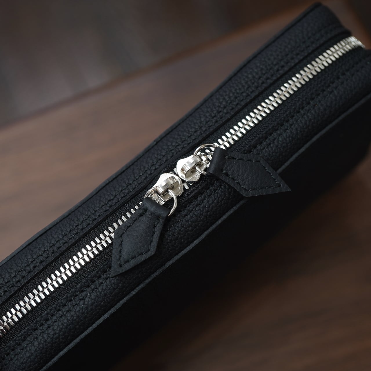豊かな革の風合いと、驚くほどの収納力の実用性を兼ね備えた、魅惑的なポーチです。