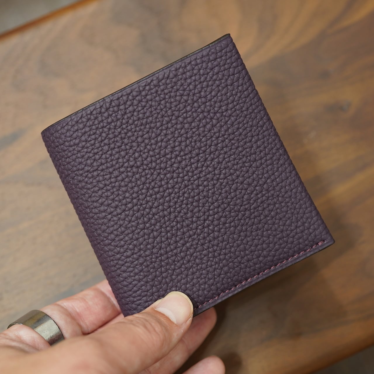 これまでの定番はCIRCLEではブッテーロでお願いしていましたが、またちょっと特別にお願いをしてシュランケンカーフでの製作をしていただき、それに合わせて細かいディテール調整と、ほとんどの部分で裏張りも施して、今回も素晴らしくふっくら良い二つ折りに仕上がりました!
