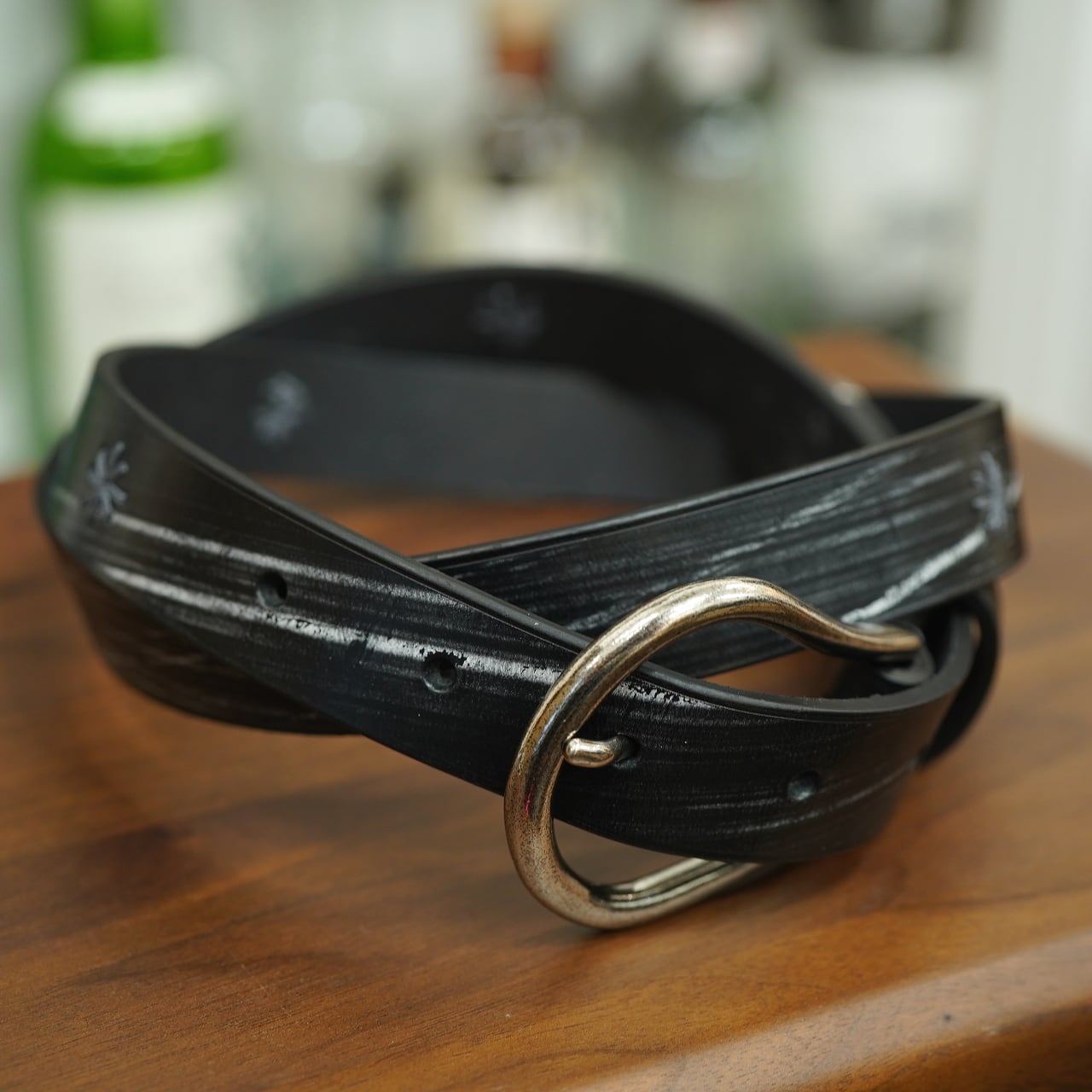 Maison d' Artisan アスタリスク刺繍ベルト 英国産ブライドルレザー ブラック