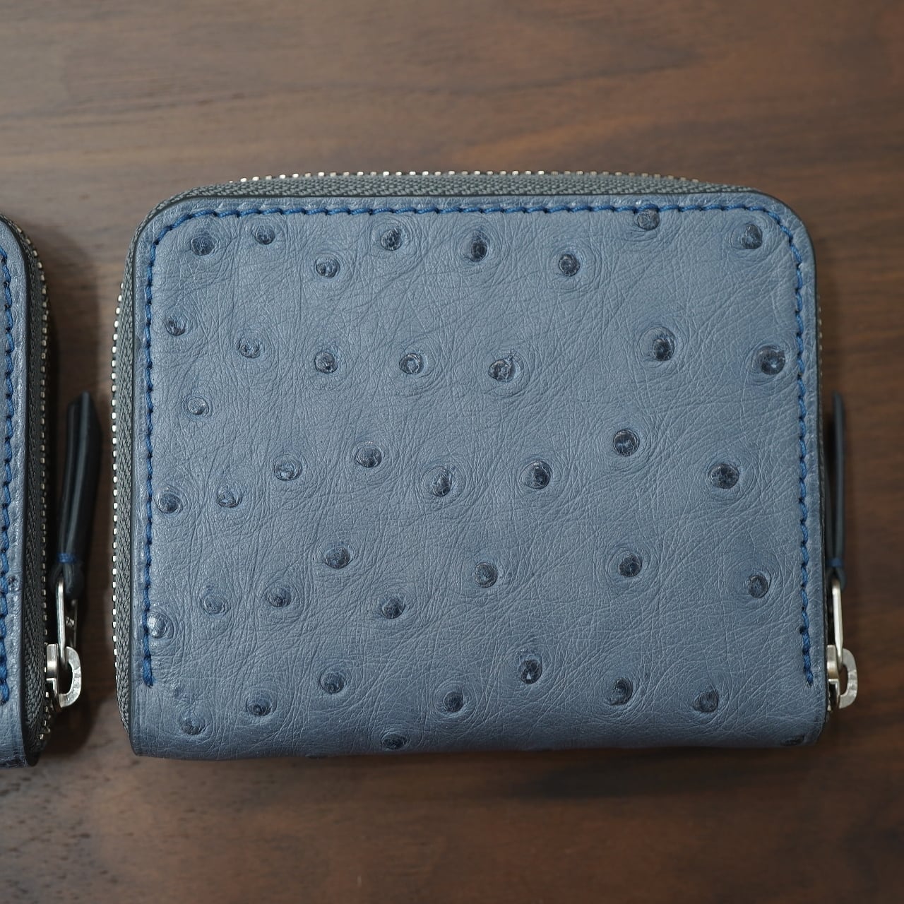 カンダミサコ ポケットウォレット オーストリッチ ブルージーン・キャメル