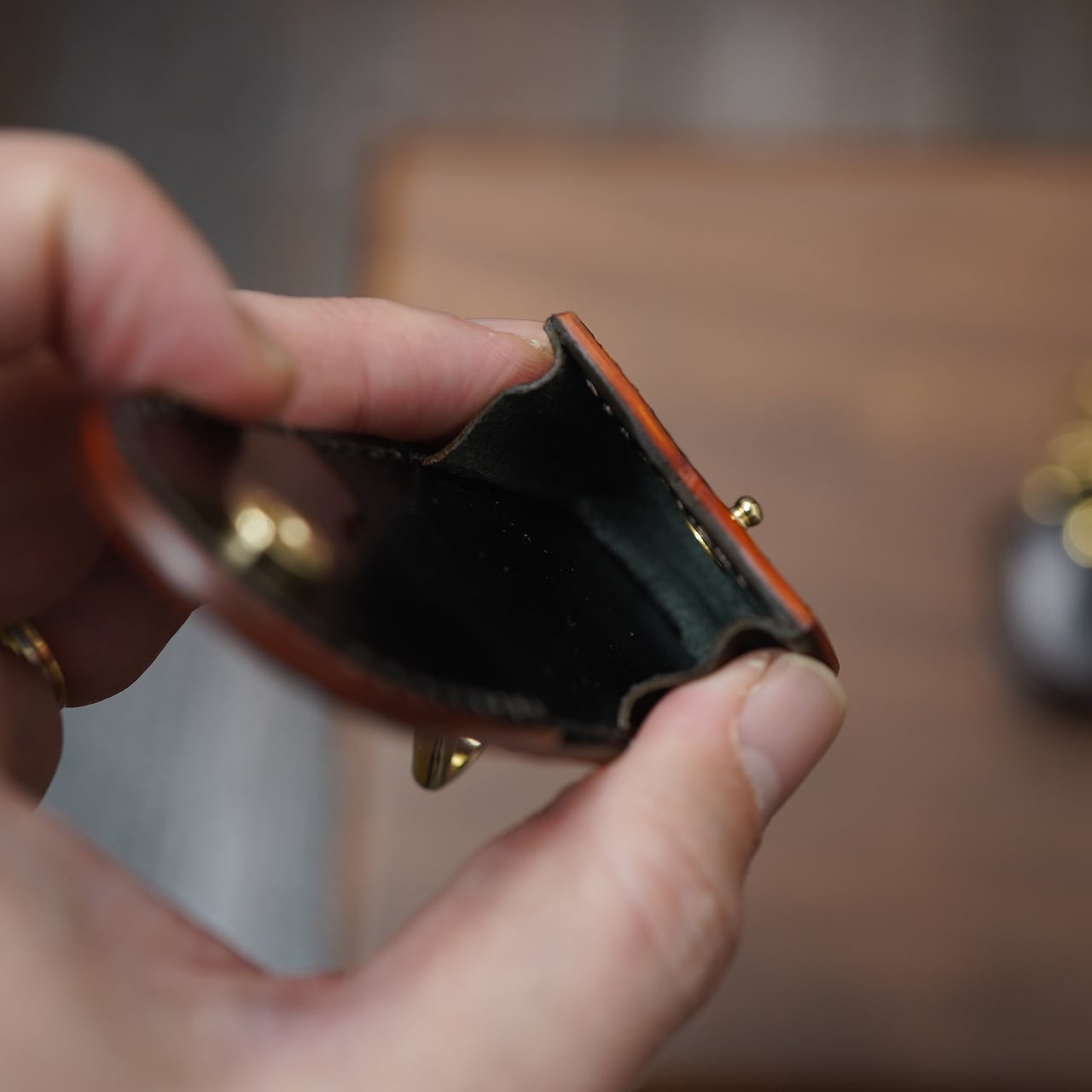 シンプルでありながら、しっかり革の豊かな風合いと、コンパクトながらしっかり良い収納力や楽しい機能性を持ったケースに仕上がっています。