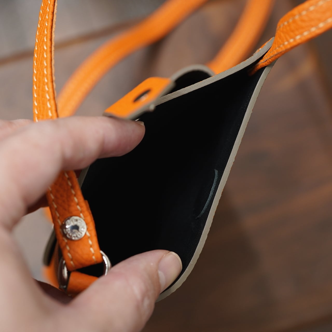 もちろん、スマホを入れずにミニ財布と色々を入れたり、海外旅行の際にパスポートを入れるバッグにしたり、さっと軽やかに細々したものを安全に持ち運べるポシェット的にもお使いいただけます。
