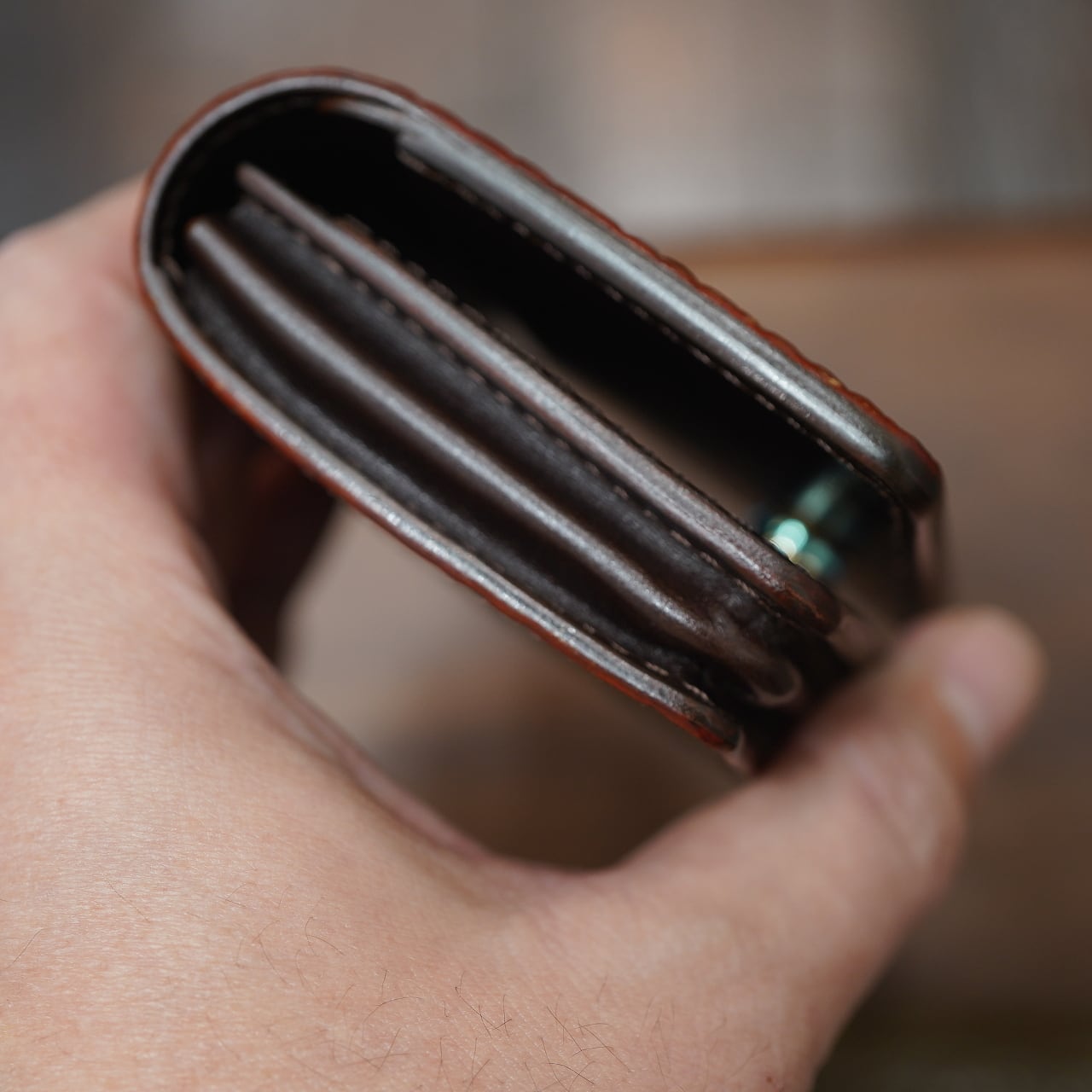 一見シンプルでありながら、しっかり革の豊かな風合いと、名刺入れやカードケースとしては相当に高い収納力や機能性を持ったケースに仕上がっています。