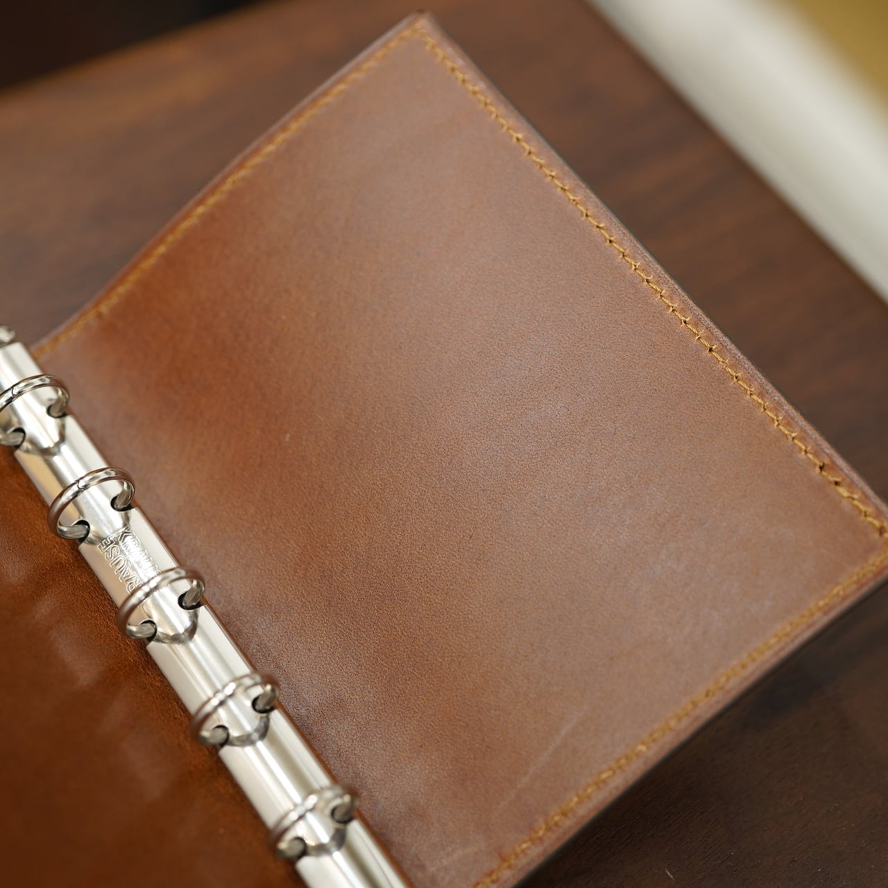 システム手帳の機能としては極めてシンプルに、金具は信頼感しっかりのドイツはクラウゼ社のバインダー金具を贅沢に使っています。