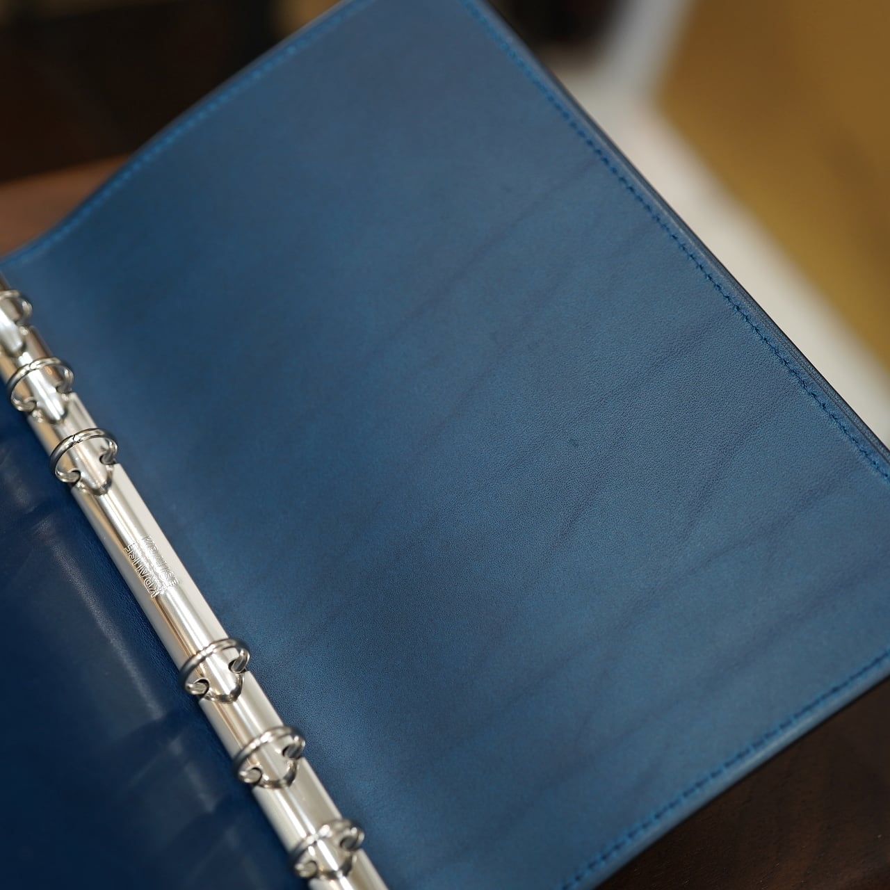 システム手帳の機能としては極めてシンプルに、金具は信頼感しっかりのドイツはクラウゼ社のバインダー金具を贅沢に使っています。
