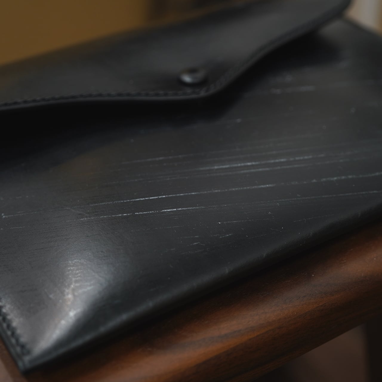フラップ式となり贅沢な革の裁断、総手縫いでありながらこのコストパフォーマンスはスリムに引き続きやはりちょっと驚きかと思います。