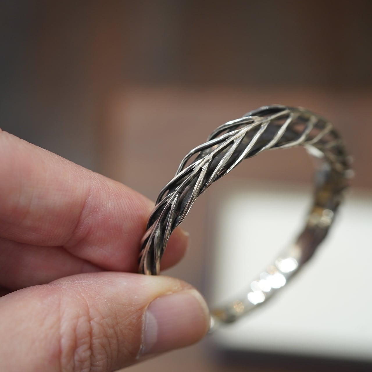 秋濱氏による細やかな技術によって生まれる、他にまたとない特別な作りのバングルです。