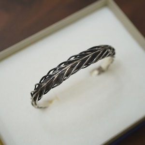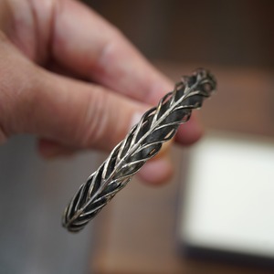 akihama 立体ボーンフェザーバングル シルバー950硫化加工