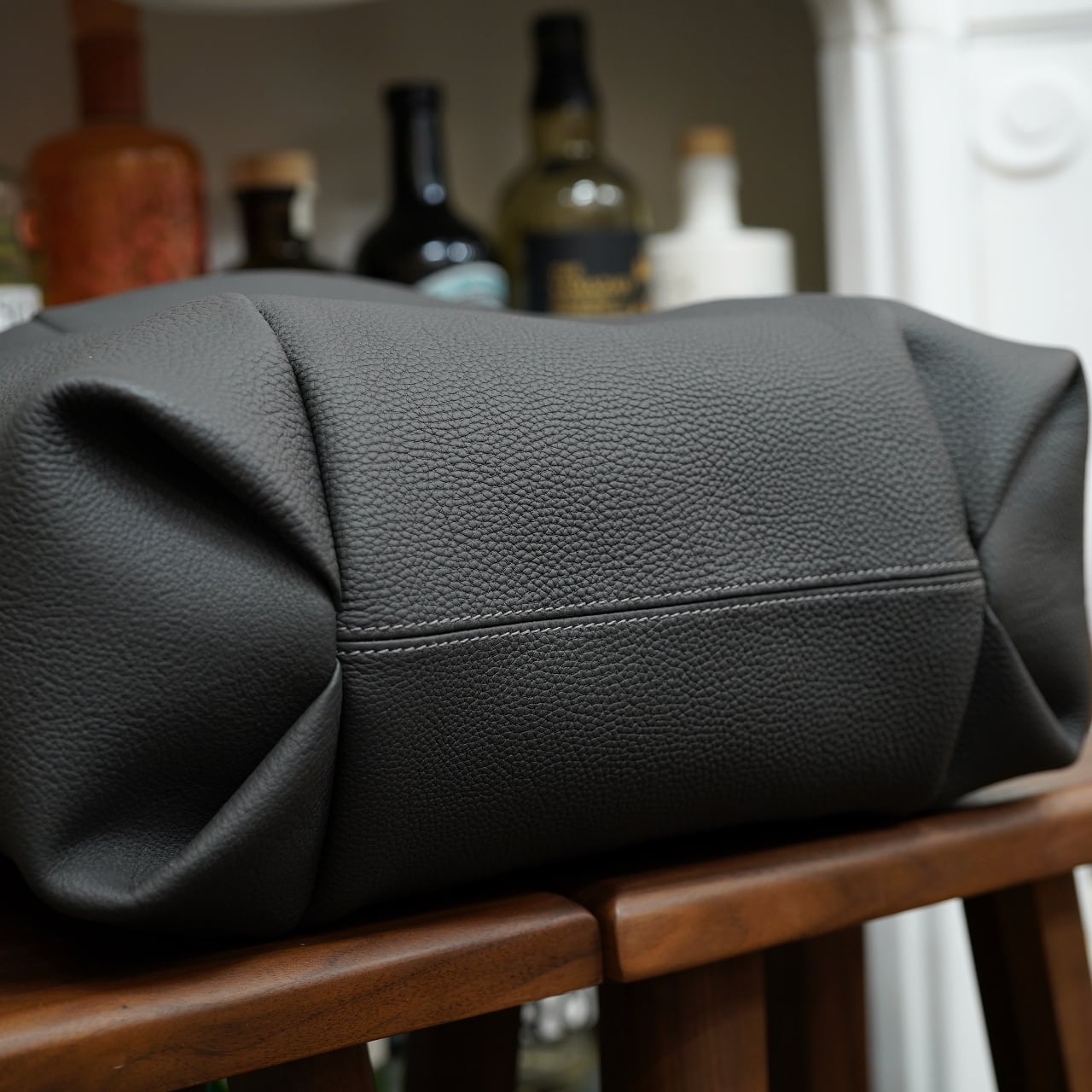 全体のサイズ感としては横が40cmほど、縦が26〜34cmほどのしっかり大きめなボディで、ふっくらとした柔らかな丸みがありながら、バリバリ多くの荷物を持ち運べる大容量トート。