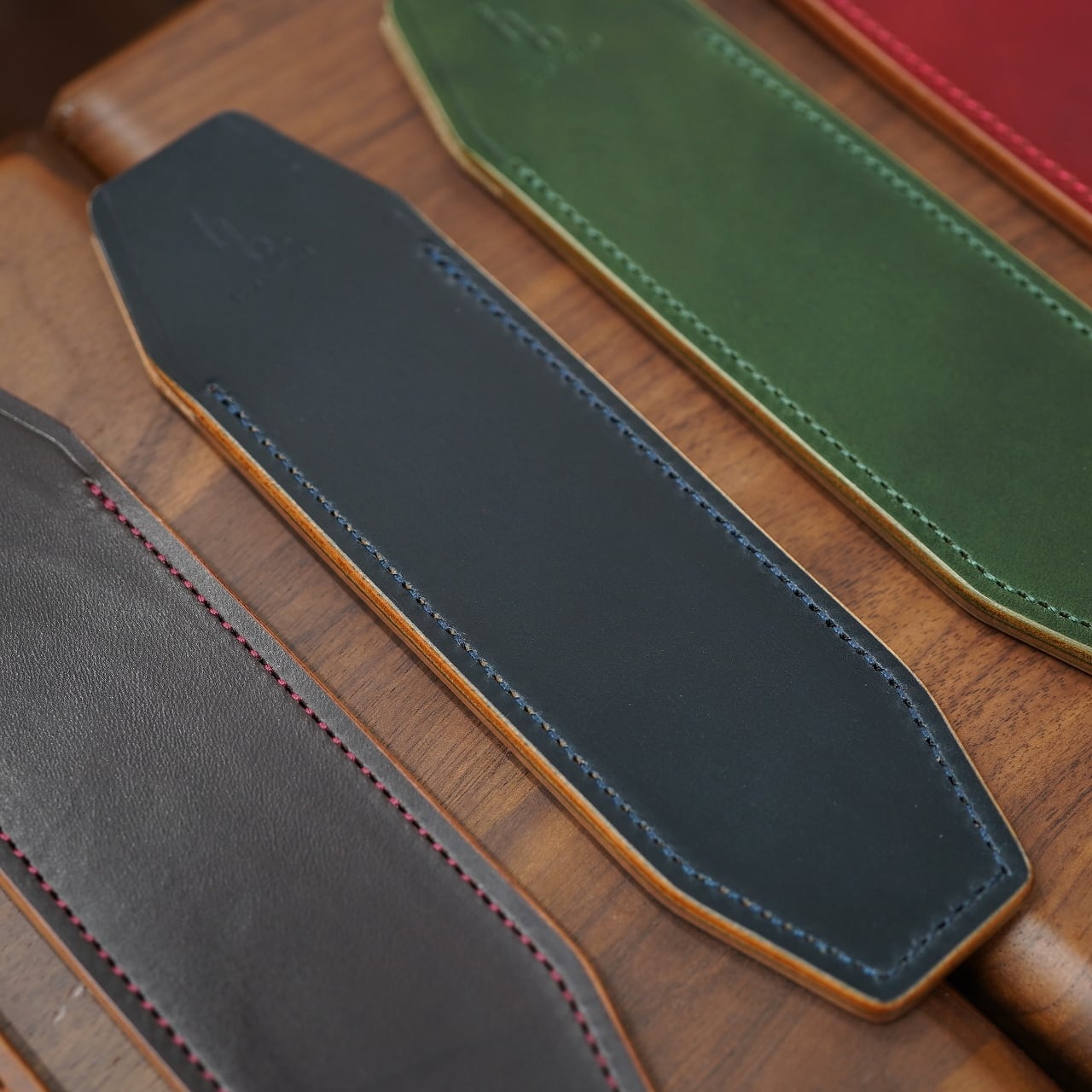 そのホーウィン社のなめすホースバットストリップを日本のレーデルオガワさんが、下鞣しの上からさらに油分を加え、表面をグレージングして整え、得意の水染め(アニリン染め)をほどしてフィニッシュして仕上げたもの。