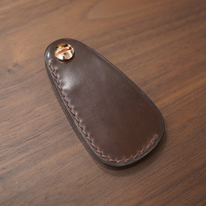 素材:ロカドコードバン、オーストリッチ、真鍮シューホーン、真鍮組ネジ(金具はそれぞれピンクゴールドメッキ)