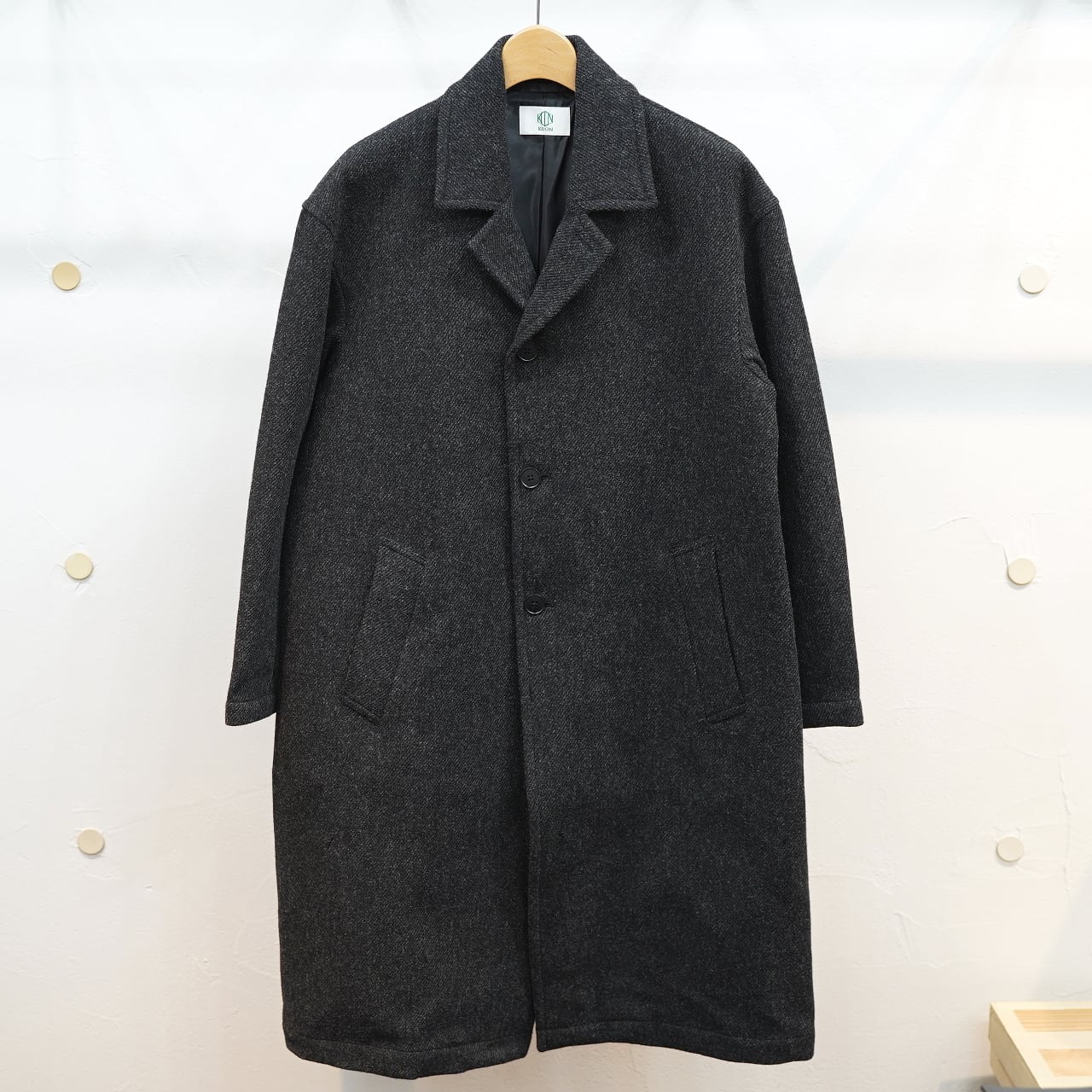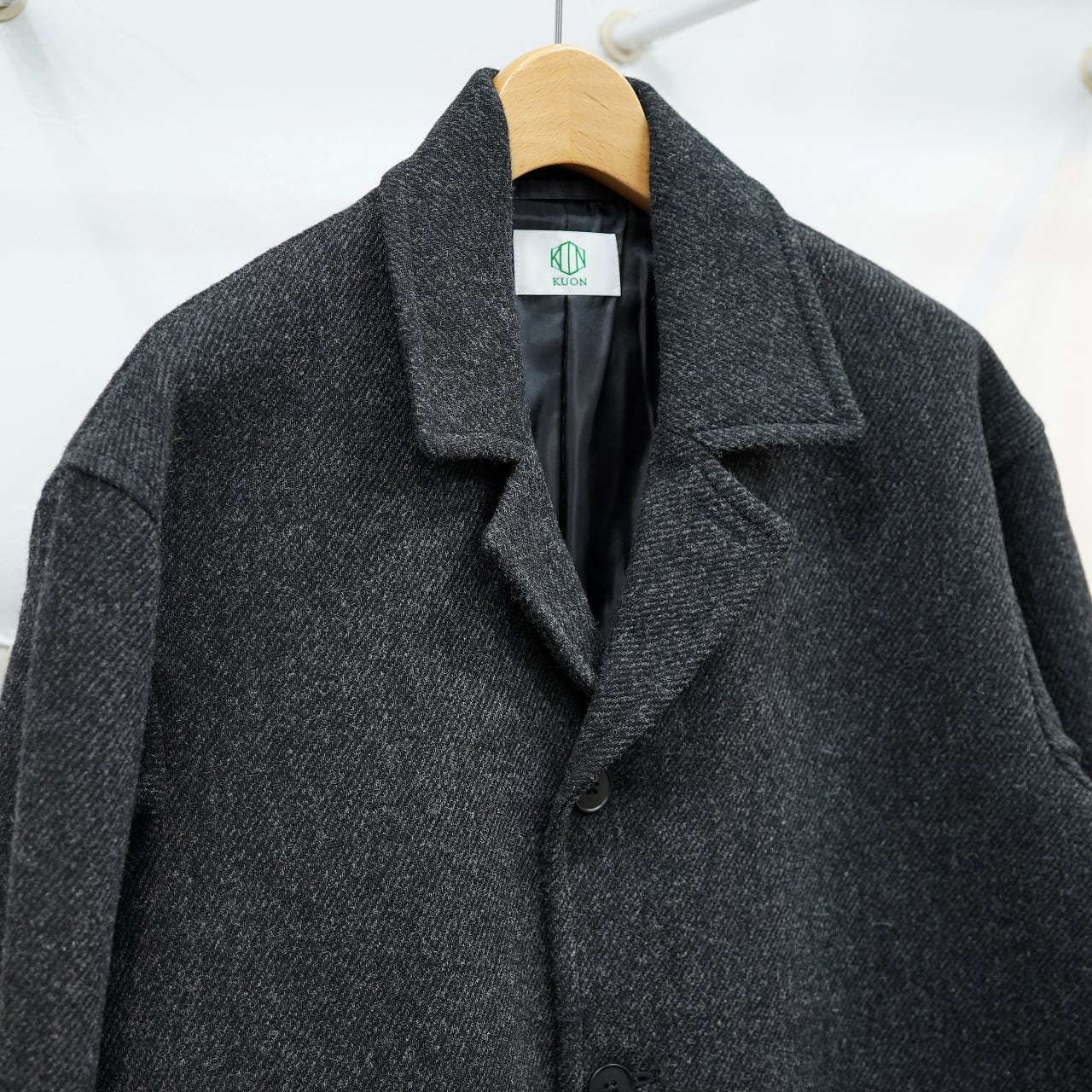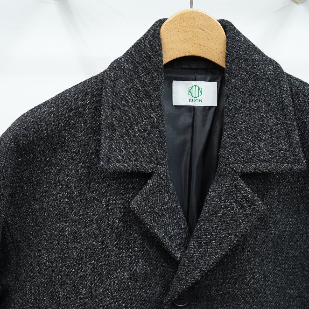 KUONグリーン ウール・ヴィンテージ着物 オーバーチェスターコート ダークグレー