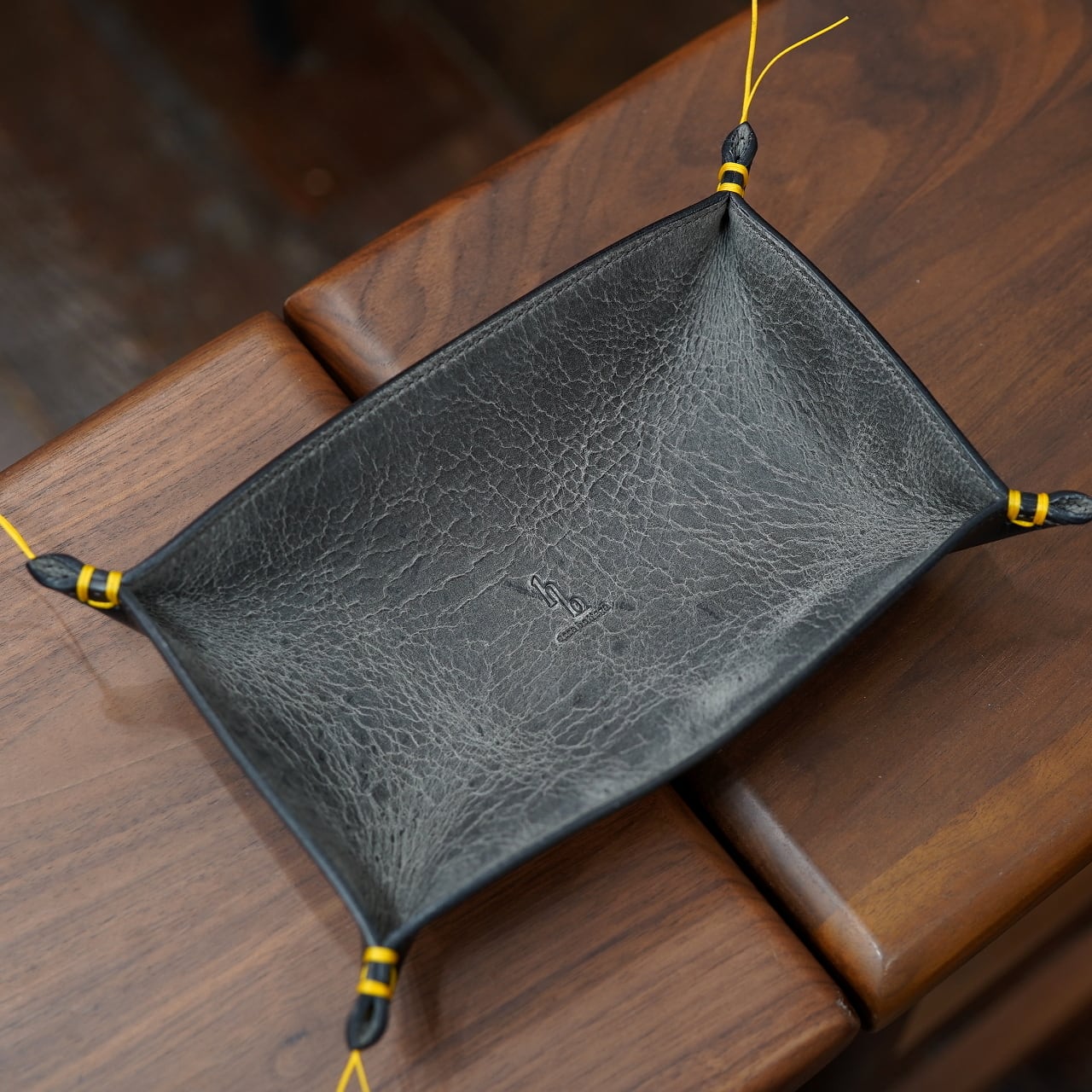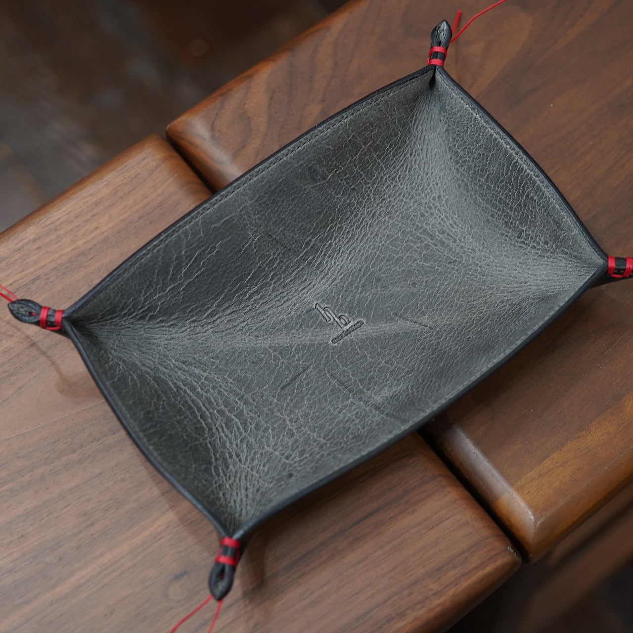 そこに裏側にはセミクロームの質感良いバッファロー革をあしらって、ちょっと贅沢な仕上げのトレーに。
