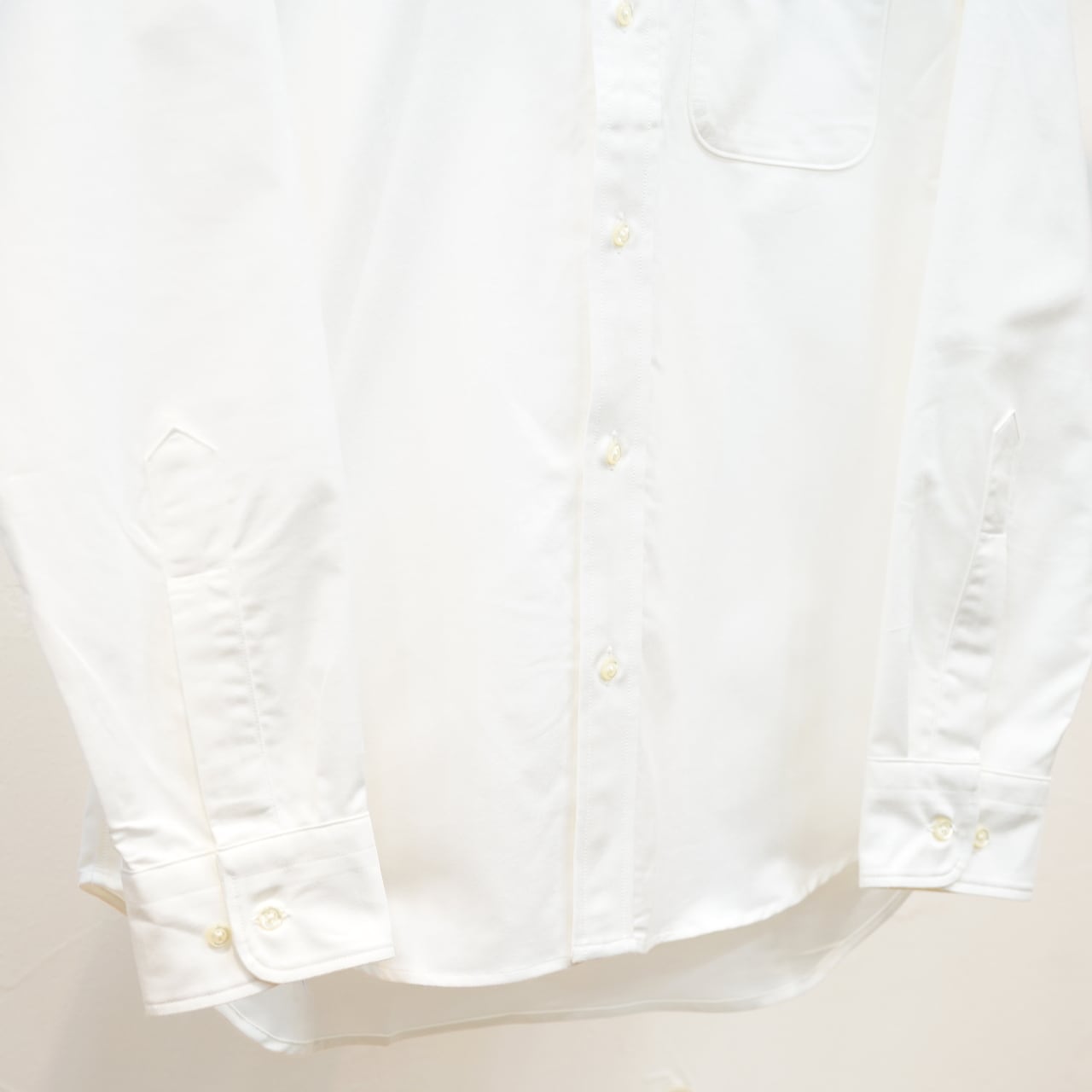 ただしタイトすぎる感じはなく、適度にボディに沿ってフィットする形は、やはり袖を通していて気持ちいいボタンダウン。