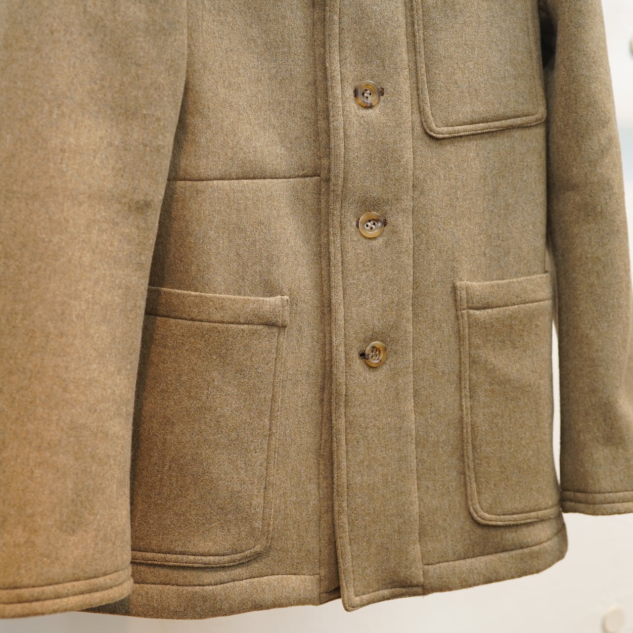 しっかり縮絨が施され、撥水防水加工処理が施され、さらに表面の滑らかさを生み出す起毛的な加工を施されたローデンクロスの中でも、とりわけ素晴らしい生地。