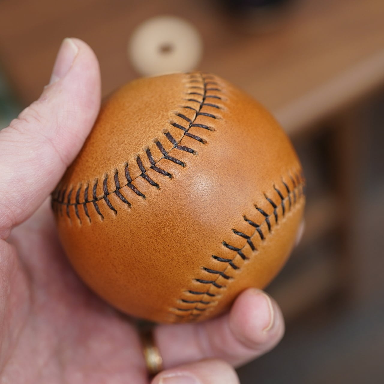 まさかのばっちり本格的な雰囲気漂う野球ボールを、上質な革と手縫いで仕上げて作られました。