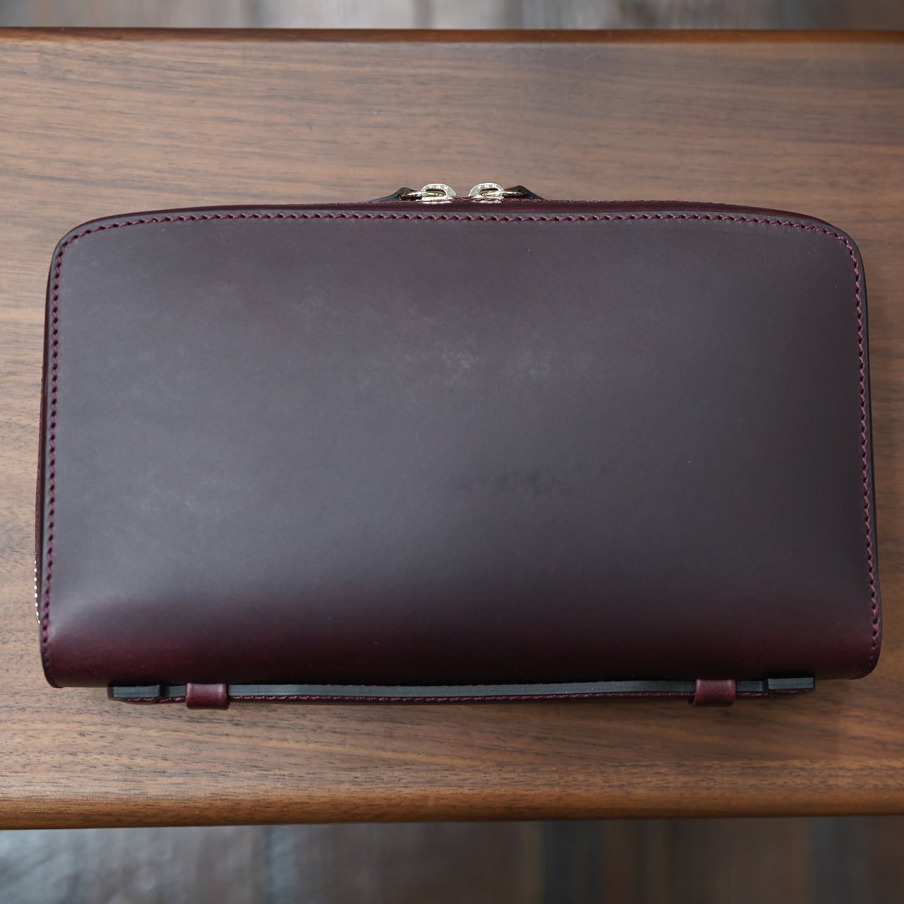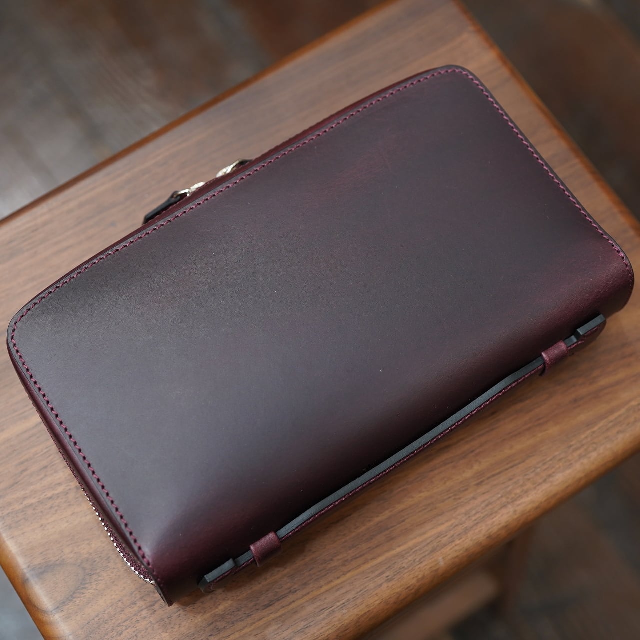 発色豊かでエイジングがとても美しく、適度に良いハリ感のあるブッテーロをベースに、そこに通常の倍ほどのオイルをしっかり入れることで、よりオイリーかつ色の深い仕上がりになったバージョン。これがまた面白く、ポーチにもぴったりで、シックでスタイリッシュな風合いでお使い頂けます。