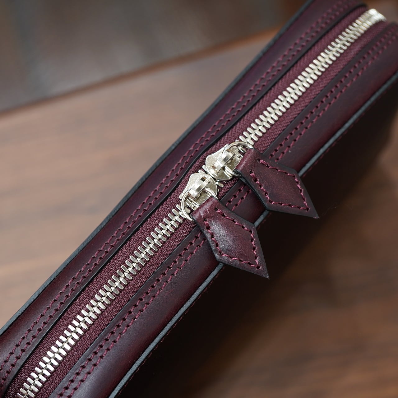 今回、いつもとは違う皮革でも作って欲しいなとお願いをして、CIRCLEの希望にて、イタリアはワルピエ社のマレンマレザーを使ってもらいました。