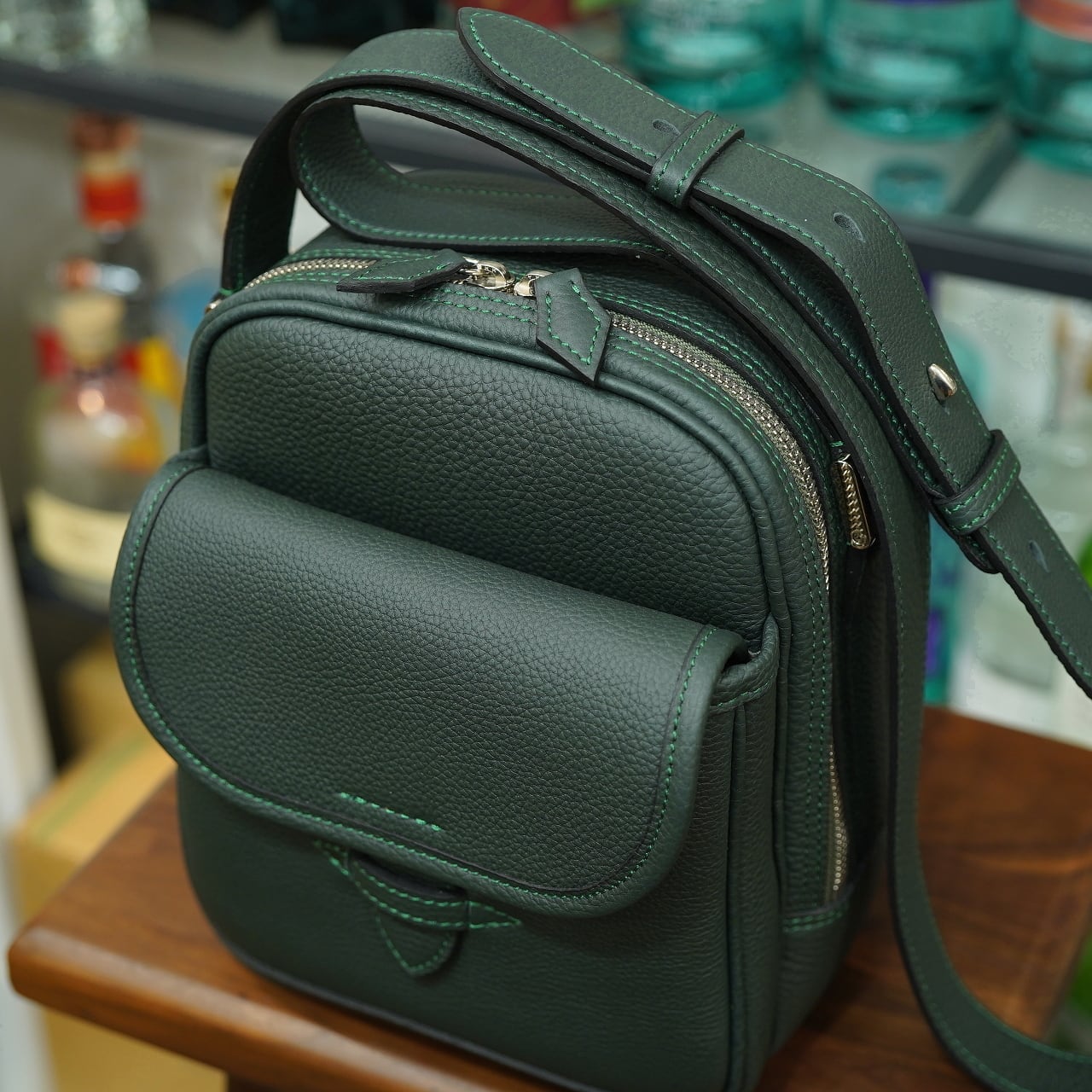マチがどっしりとあり、ポケットも充実している分、パッと見たサイズ感よりも随分と多くを持ち運べる、とってもお役立ちなミニショルダーバッグに仕上がっています。