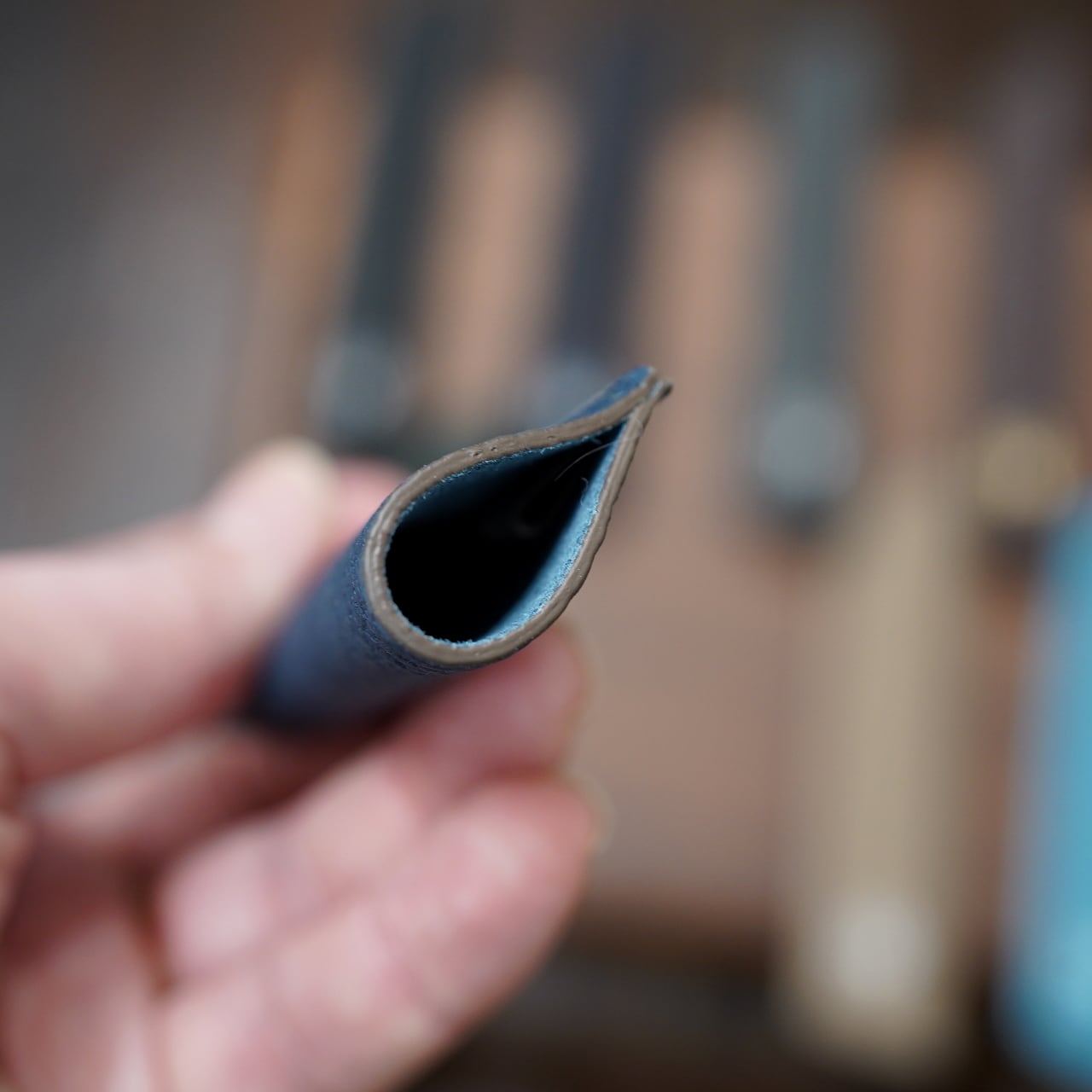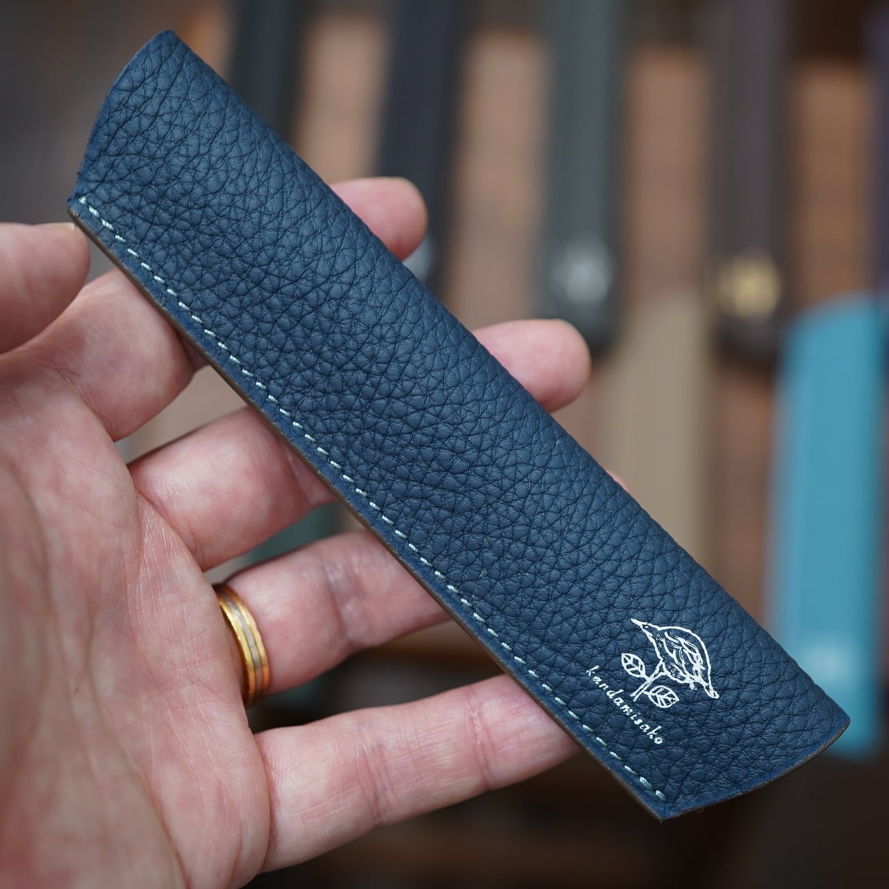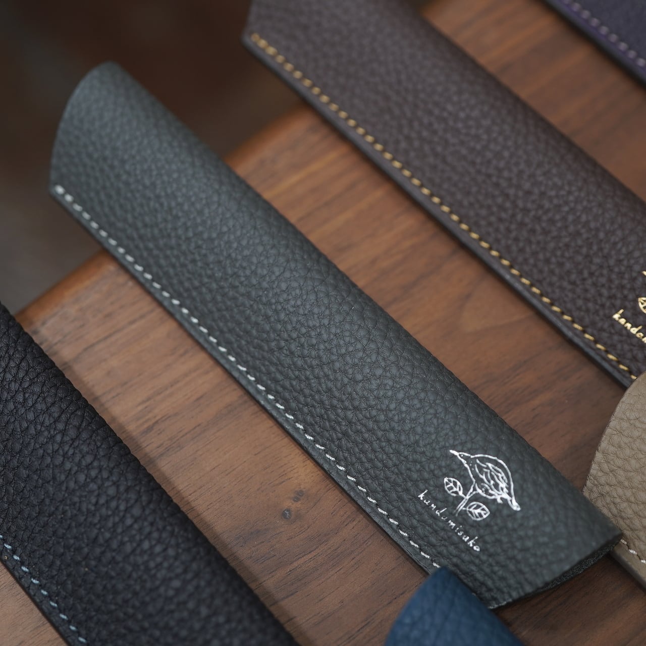 *一点一点、カンダミサコが手作業で仕立てているペンシースとなりますので、革の皺やわずかな傷やムラなどがある場合もございます。職人製作の味わいとしてお愉しみ頂ければと思います。