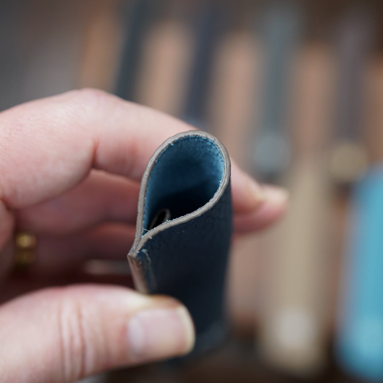 こちらはカンダミサコが作る、ある種ブランドの顔とも呼べるくらいに人気のアイテムである、定番の一本挿しペンシース。
