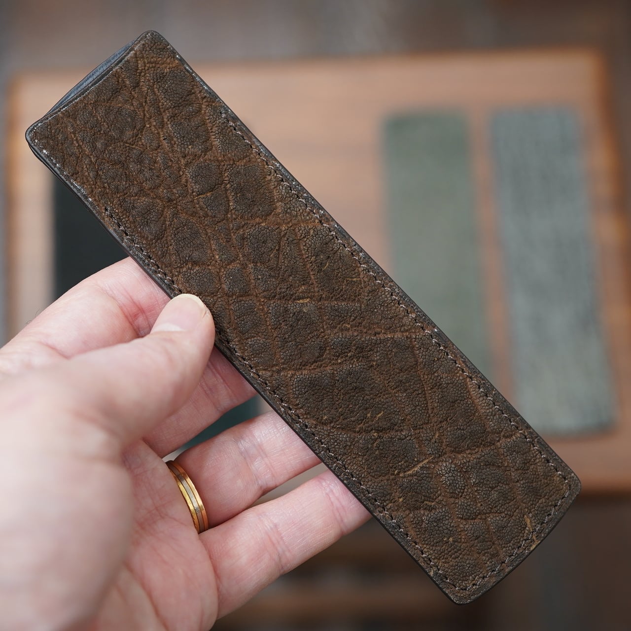 これまで二本挿しのスタイルのみで展開があった平型のシースを、お願いして1本挿しとしても新しく作っていただき展開となります。
