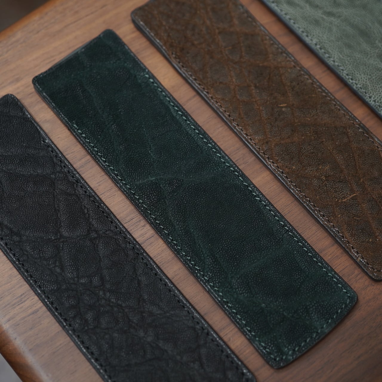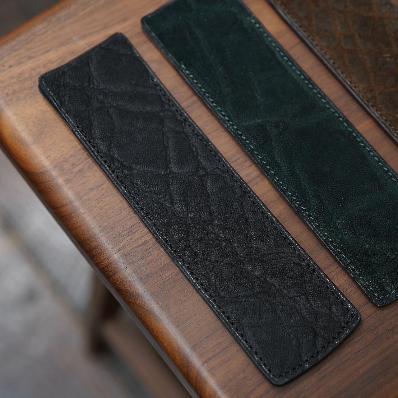 カンダミサコのアイテムは大量生産が出来ないため、基本的には各型各色少量での入荷となります。また、革の表情やシボ感も個体差が若干ございますが、ペンシースに関しては代表画像にてご案内をしております。