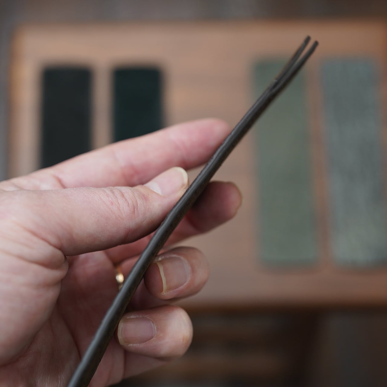 こちらはカンダミサコが作る、新しい形の1本挿しペンシース。