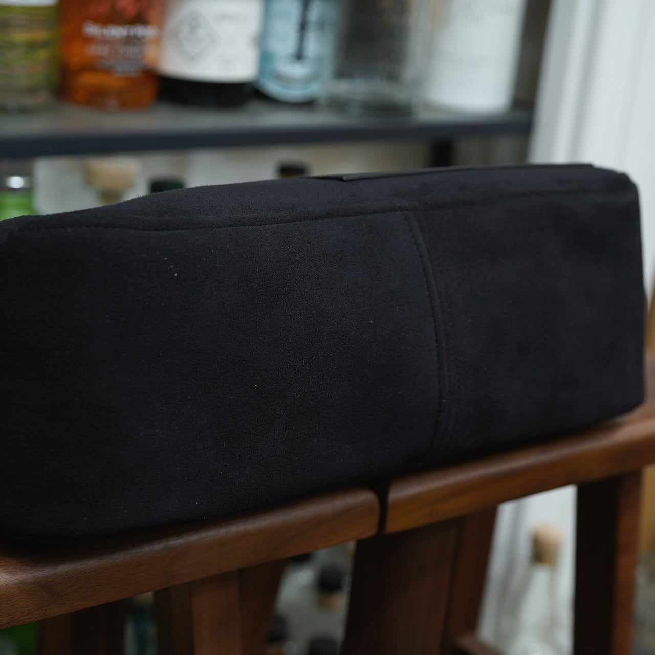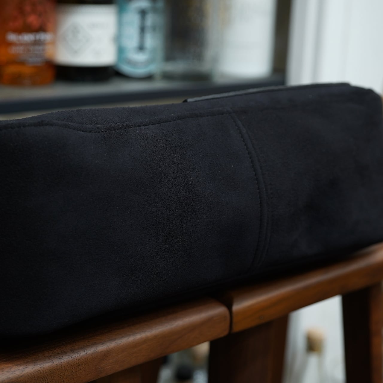日本が誇る東レさんが開発した、高級車の内装であったり、様々な高級インテリアに用いられるウルトラスエード(旧エクセーヌ、イタリアではアルカンターラ)という超高級人工スエードの中でも、特に厚みがしっかりあるものを用いて、