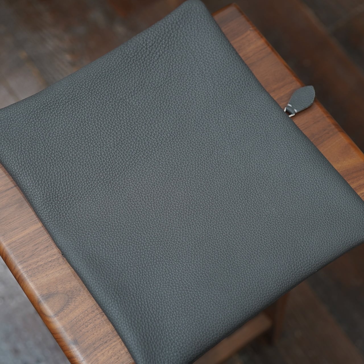 もちろん床面の感触も心地よく、また芯通しの革ゆえに色合いも美しく、dumiポーチにもやはりぴったりの雰囲気になってくれました。