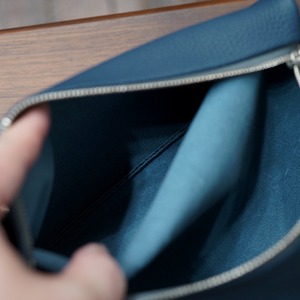 半分に折られた見た目と全体のサイズ感に対して、実はフラップに見える側も収納部屋になっているため、地味に色々とたっぷり入れられて便利なかたち。