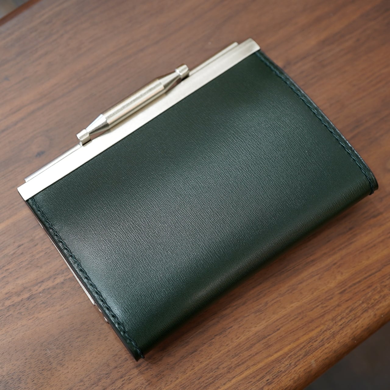 Maison d' Artisan 特注がま口ウォレット Monnaie(モネ) ボックスカーフグリーン