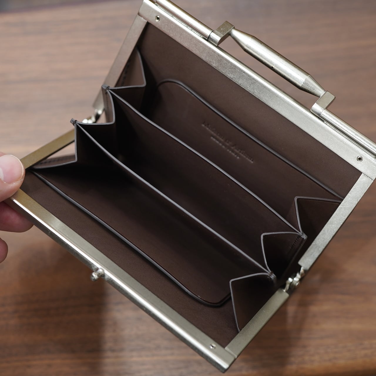 他にないメゾンドアルチザンだけが使えるがま口金具、あまりにも素晴らしい仕上がりなので、これは是非とも手にしていただきたい良さです。