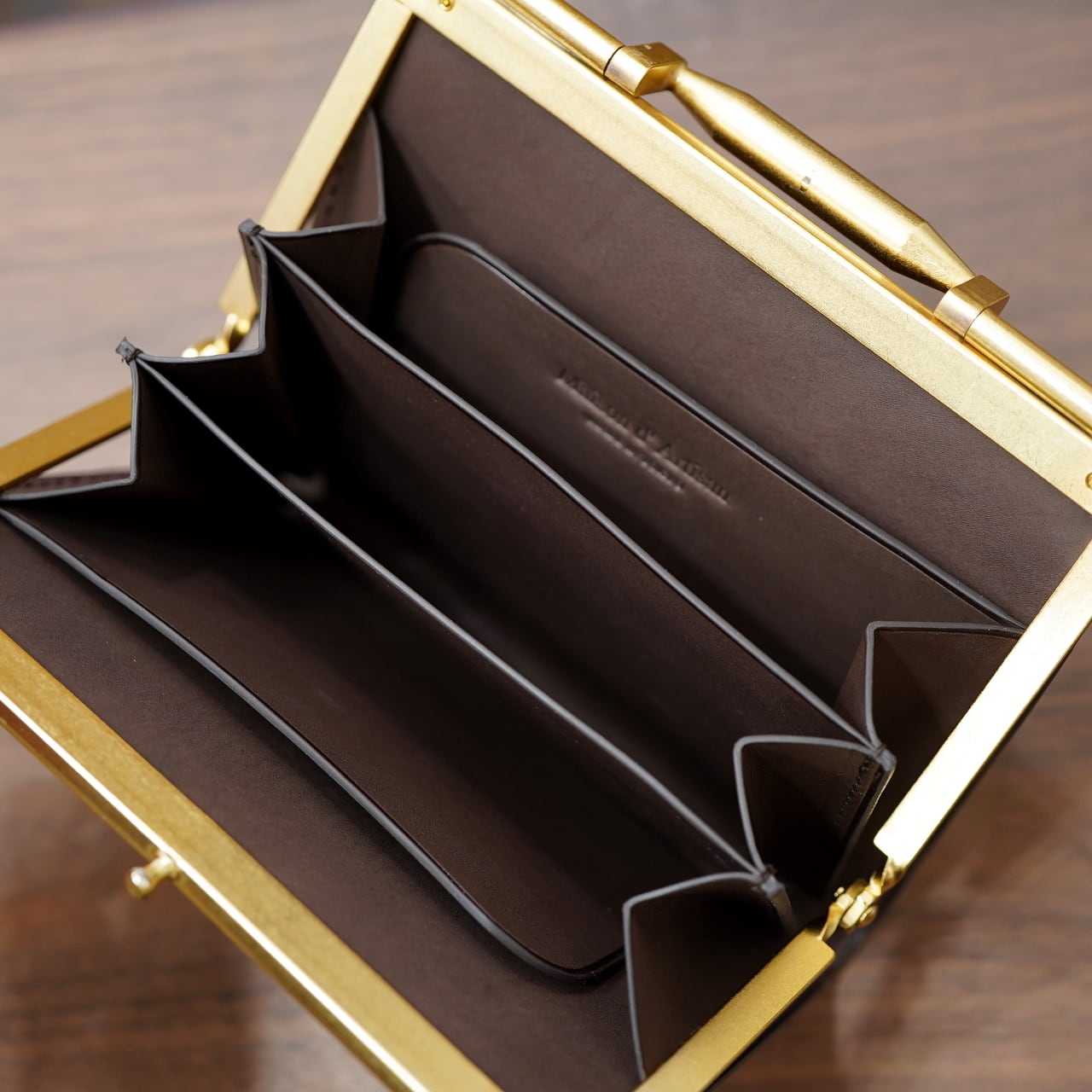 他にないメゾンドアルチザンだけが使えるがま口金具、あまりにも素晴らしい仕上がりなので、これは是非とも手にしていただきたい良さです。