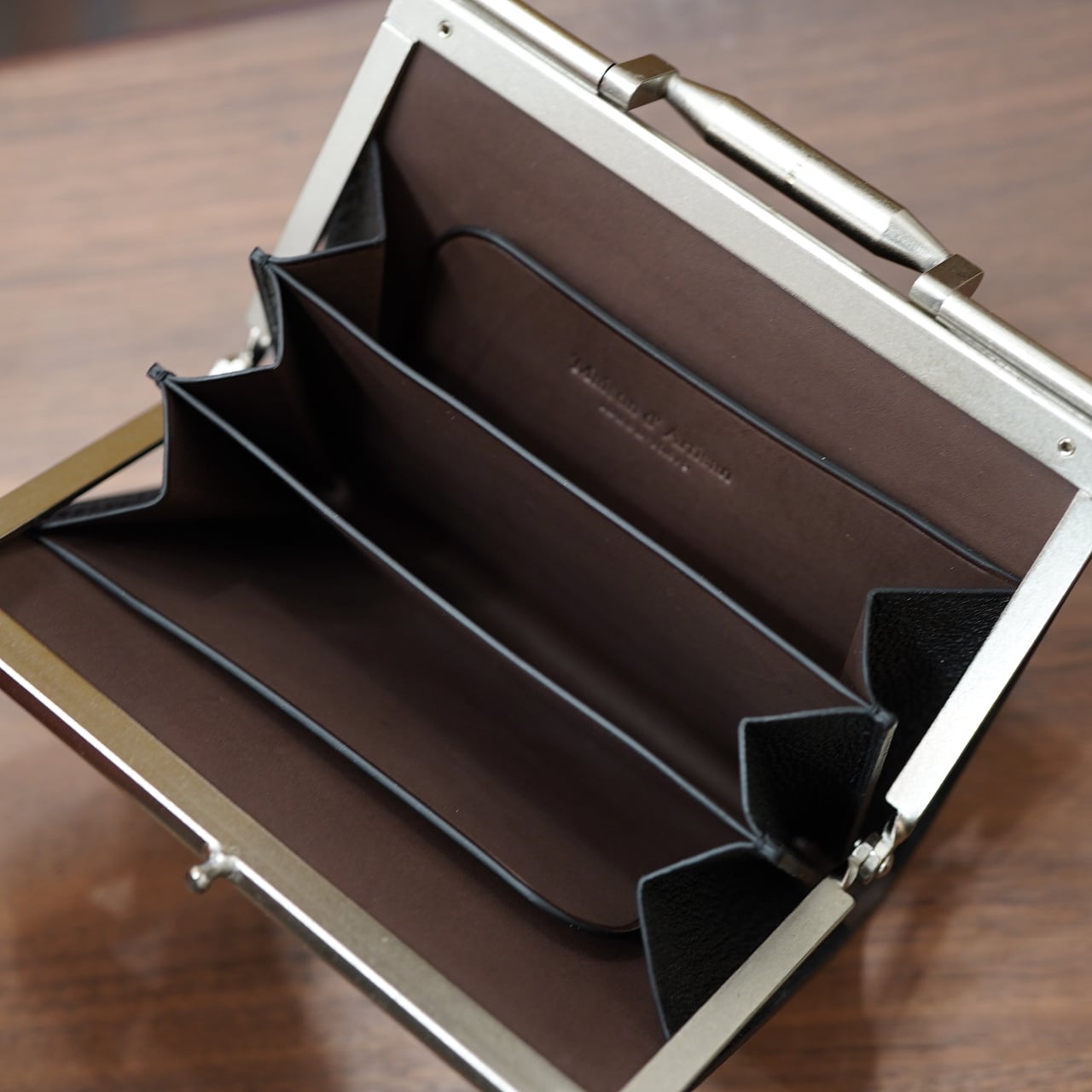 Maison d' Artisan 特注がま口ウォレット Monnaie(モネ) 茶利八方革ブラック