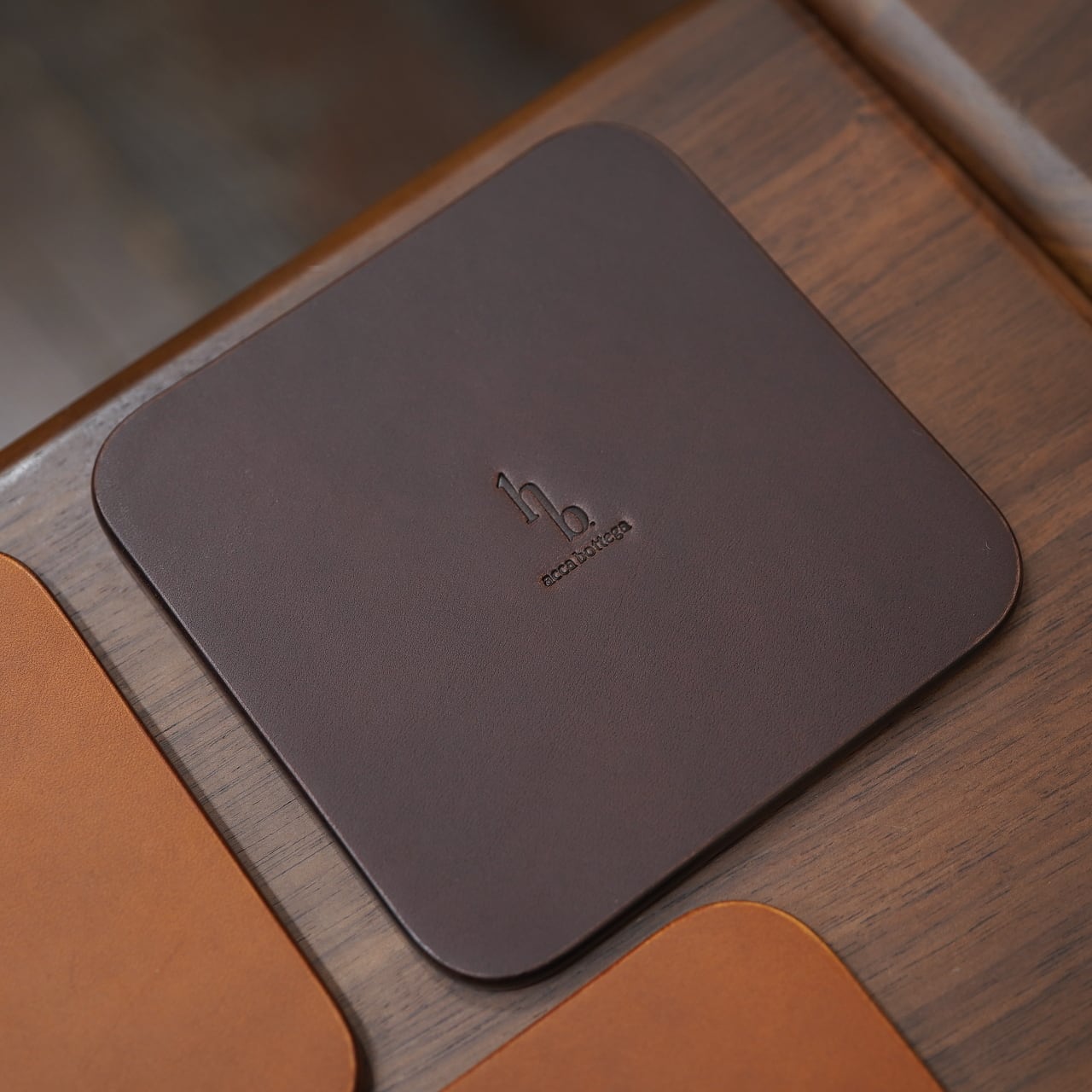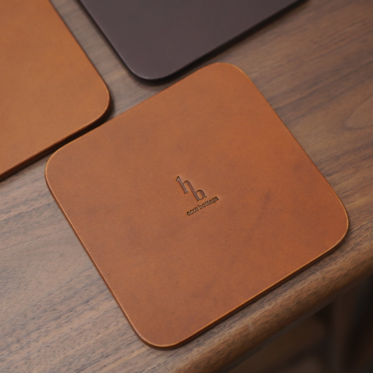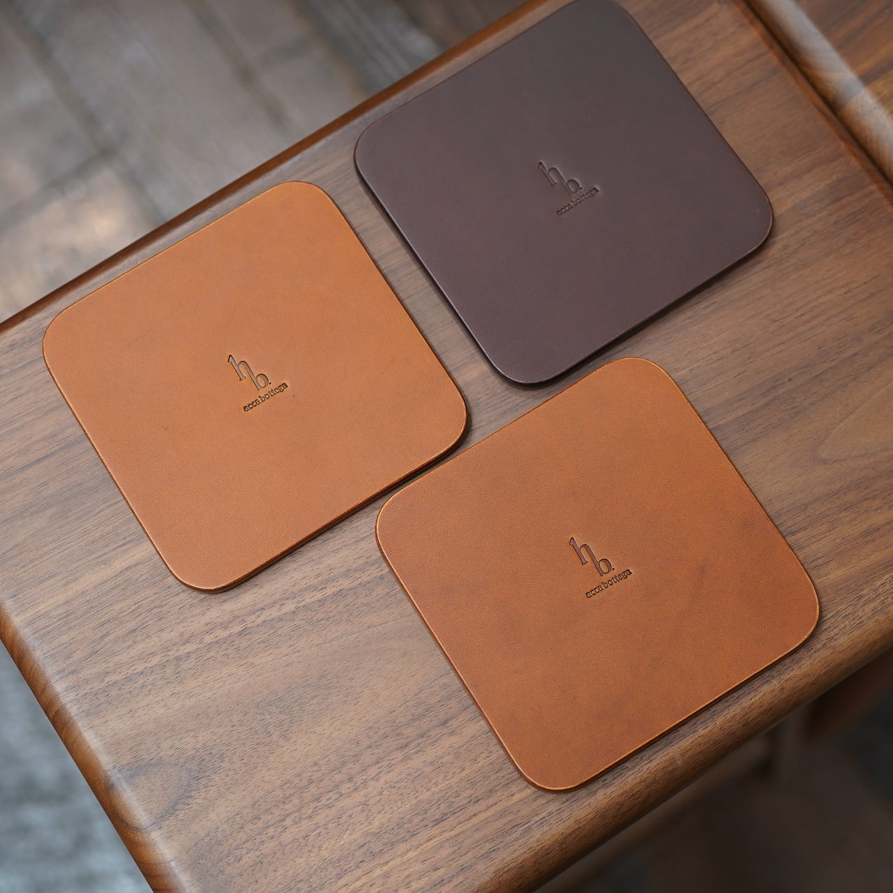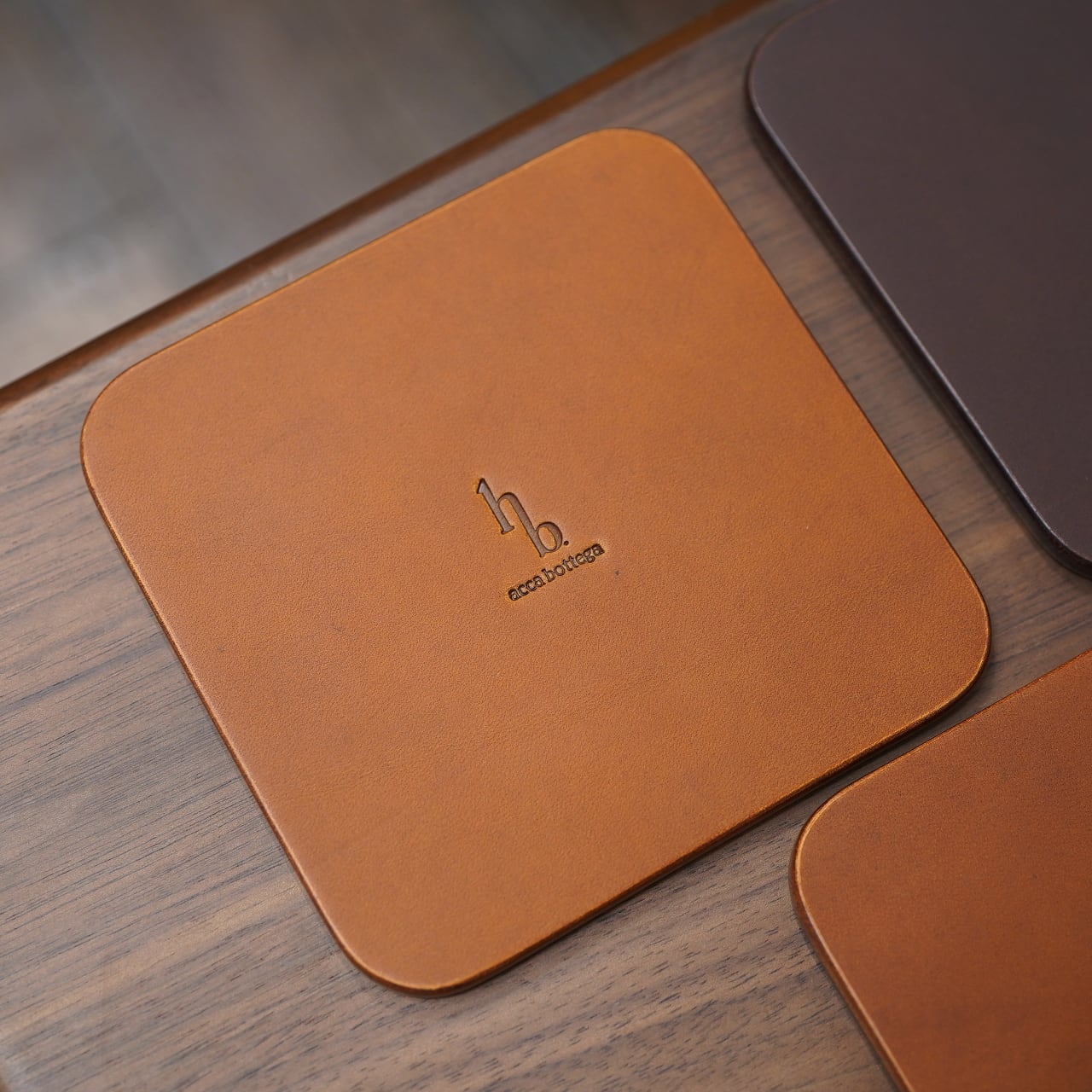 こちらは、acca bottegaの池田さんがお持ちだったデッドストックの革を用いて作ってくれた、極厚コースター。