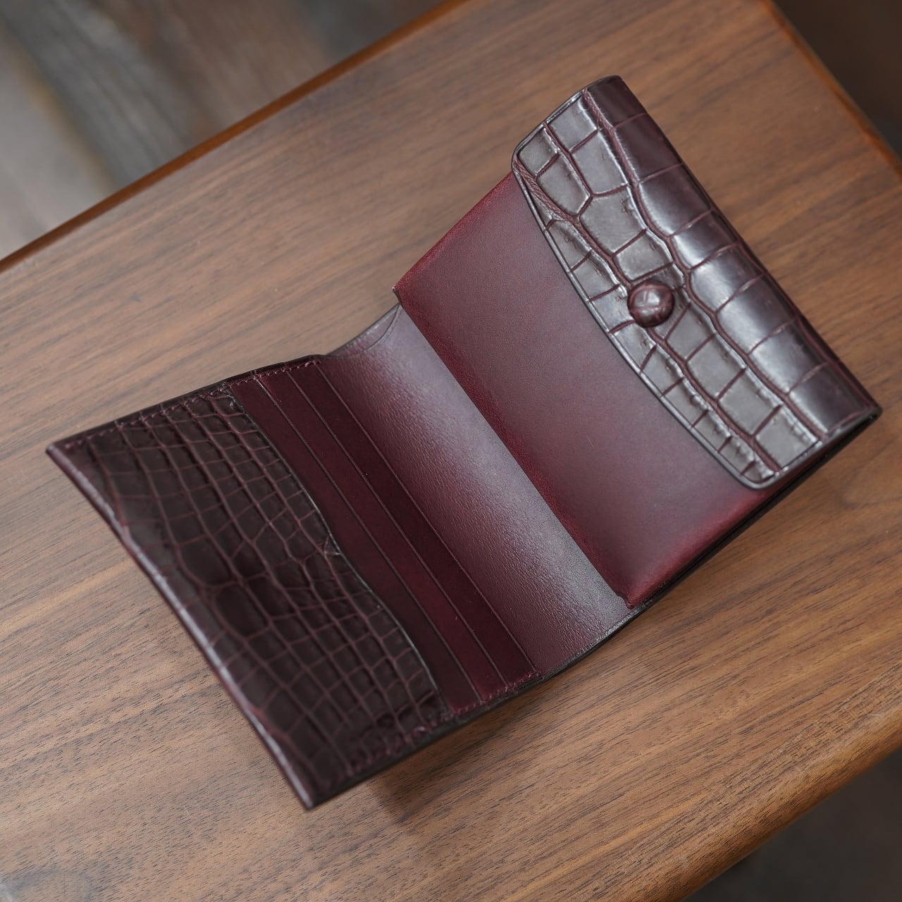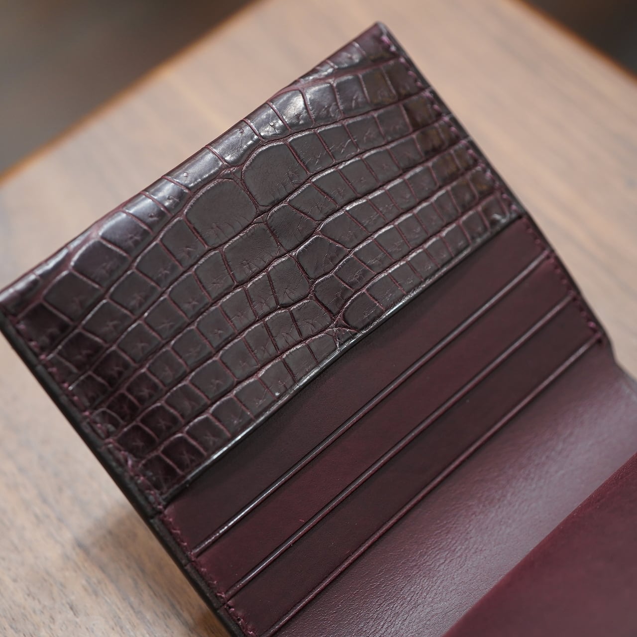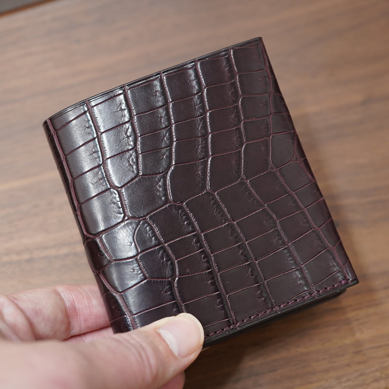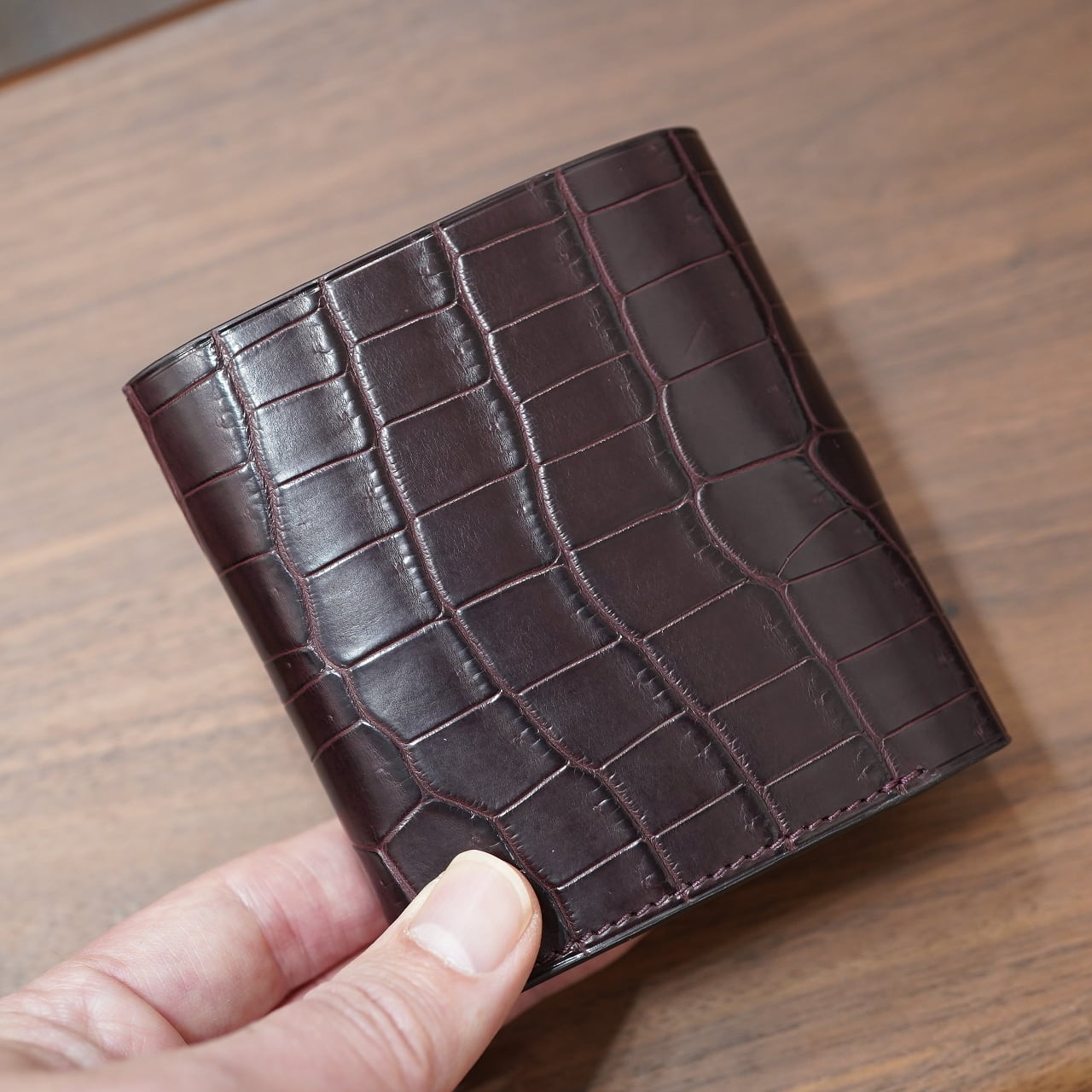 カンダミサコ 小銭入れ付二つ折り財布 クロコダイルセンター取り(内装ブッテーロ) ボルドー