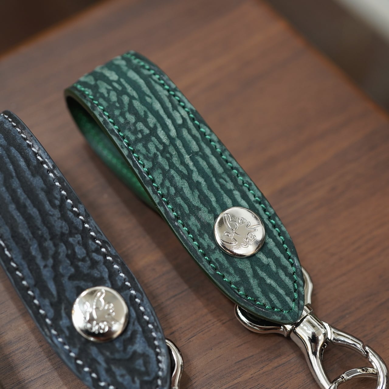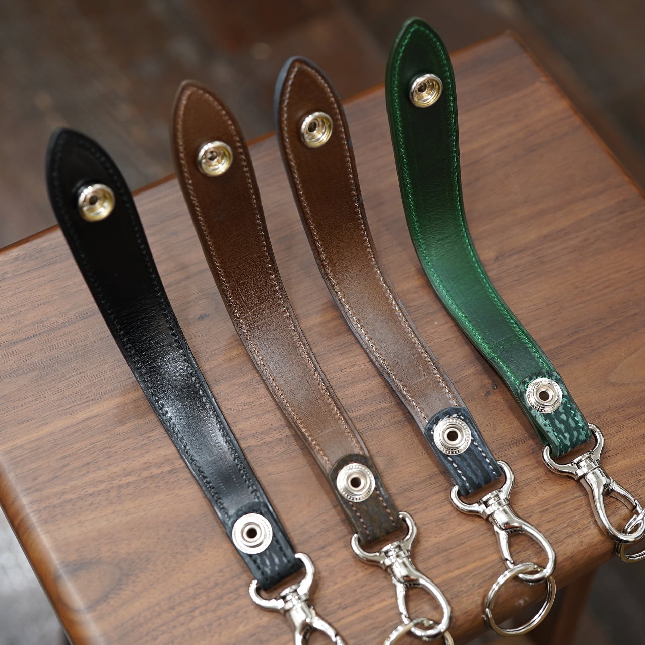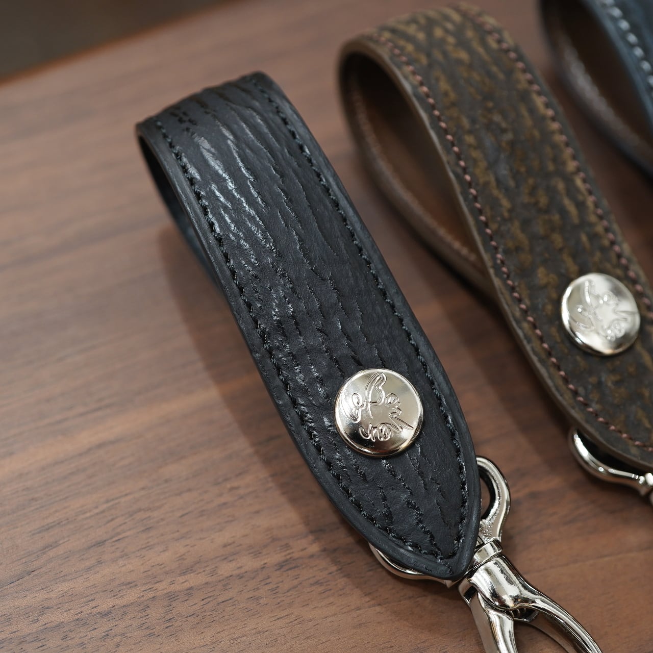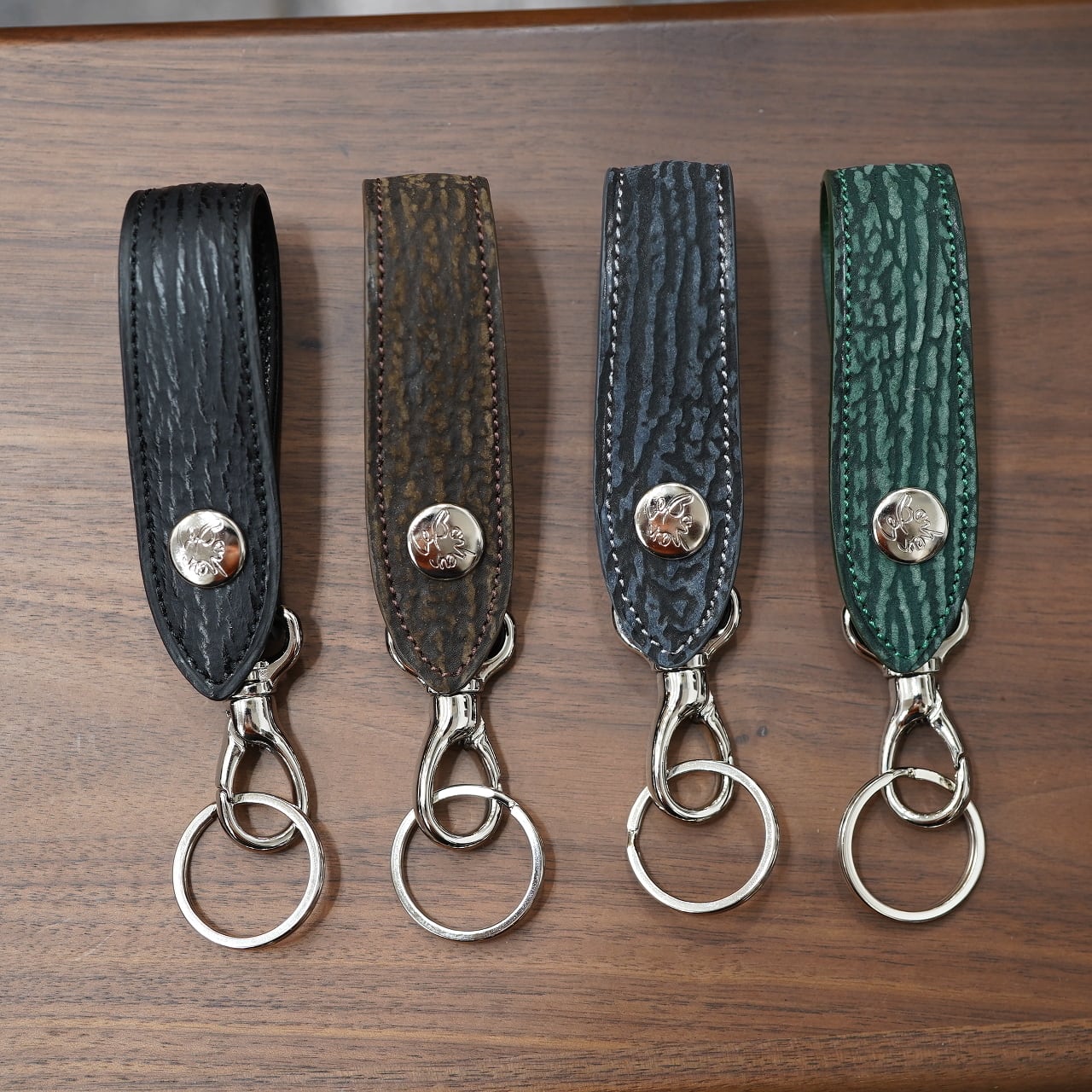 今回はCIRCLEの希望にて、ボナーさんのベルトキーホルダーでは滅多に作られることのない、様々な皮革でお願いしました!