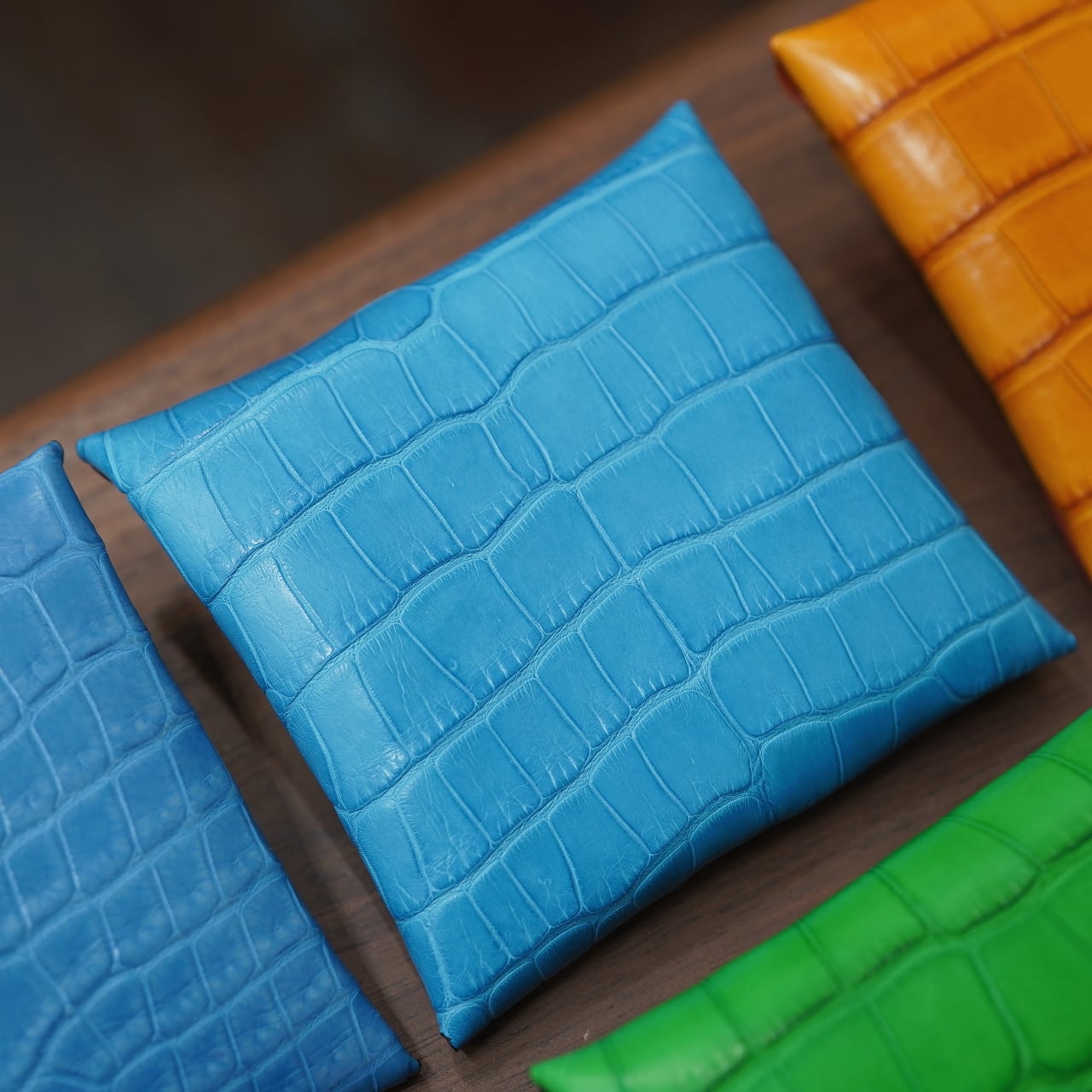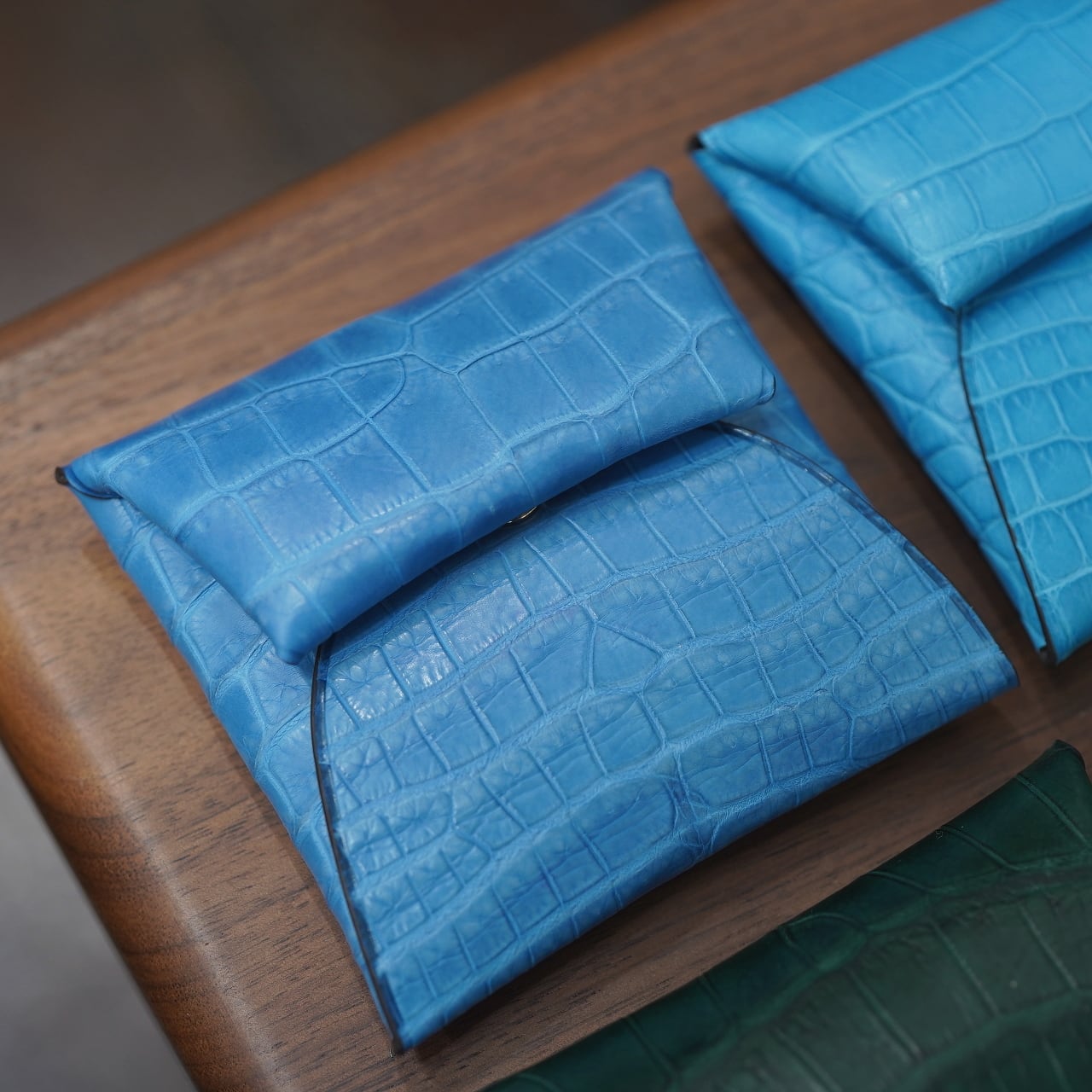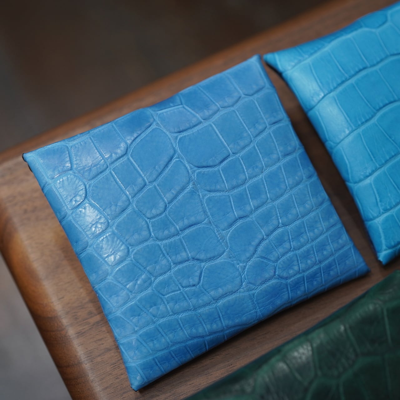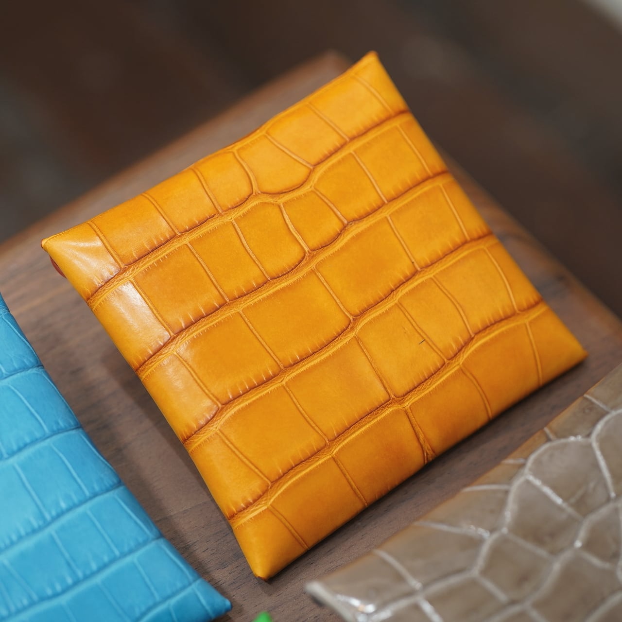 そのおかげのふっくら感や使いやすさはもちろん、ひとつなぎになることでワニ革の裁断効率は極めて悪く、センターをそれで裁断するのは超贅沢な話。