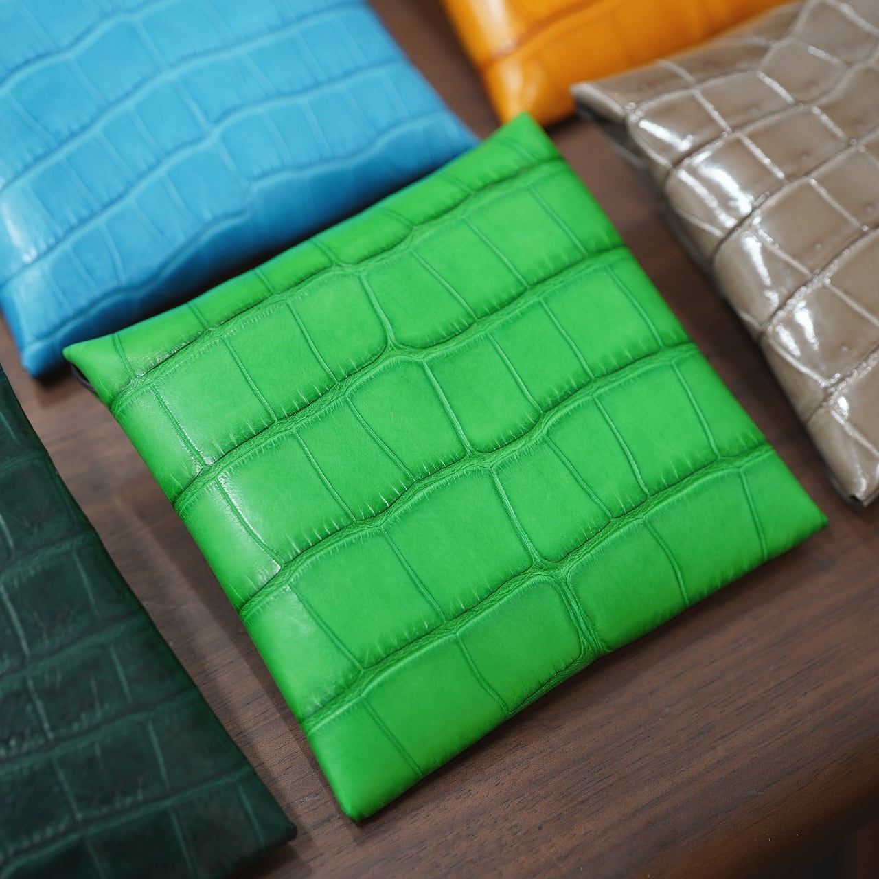 アリゲーターとクロコダイルを様々なカラー、様々な仕上げのもので集め。