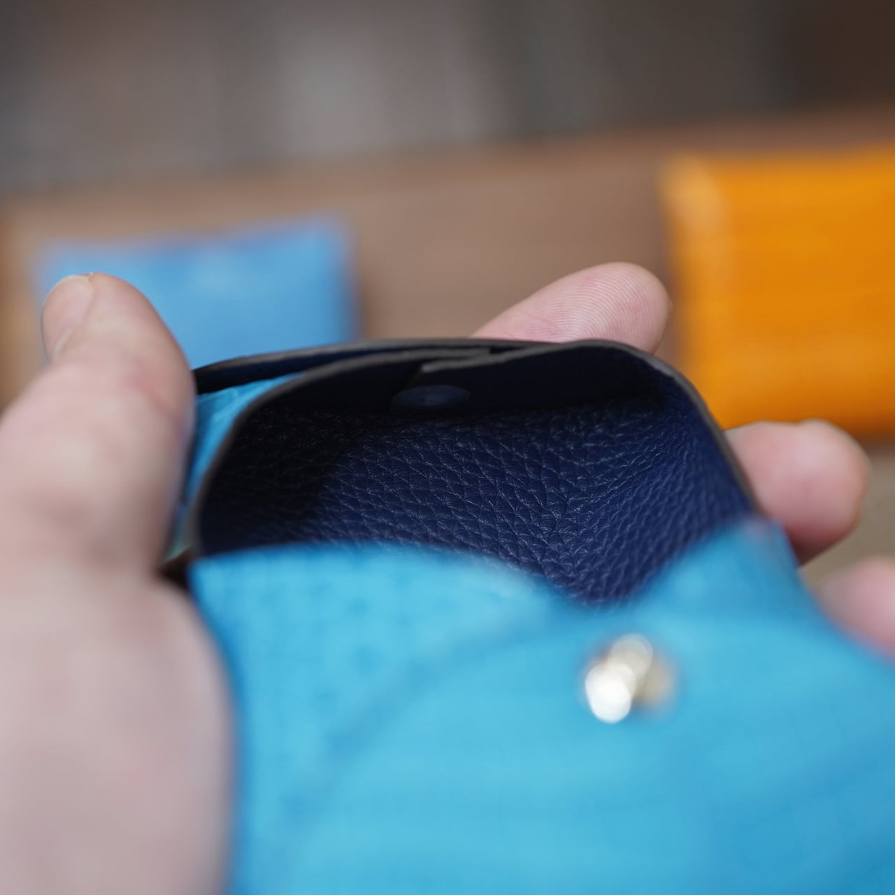 内装革によって全体の柔らかさも個性があり、それもまた楽しいコインケースに。