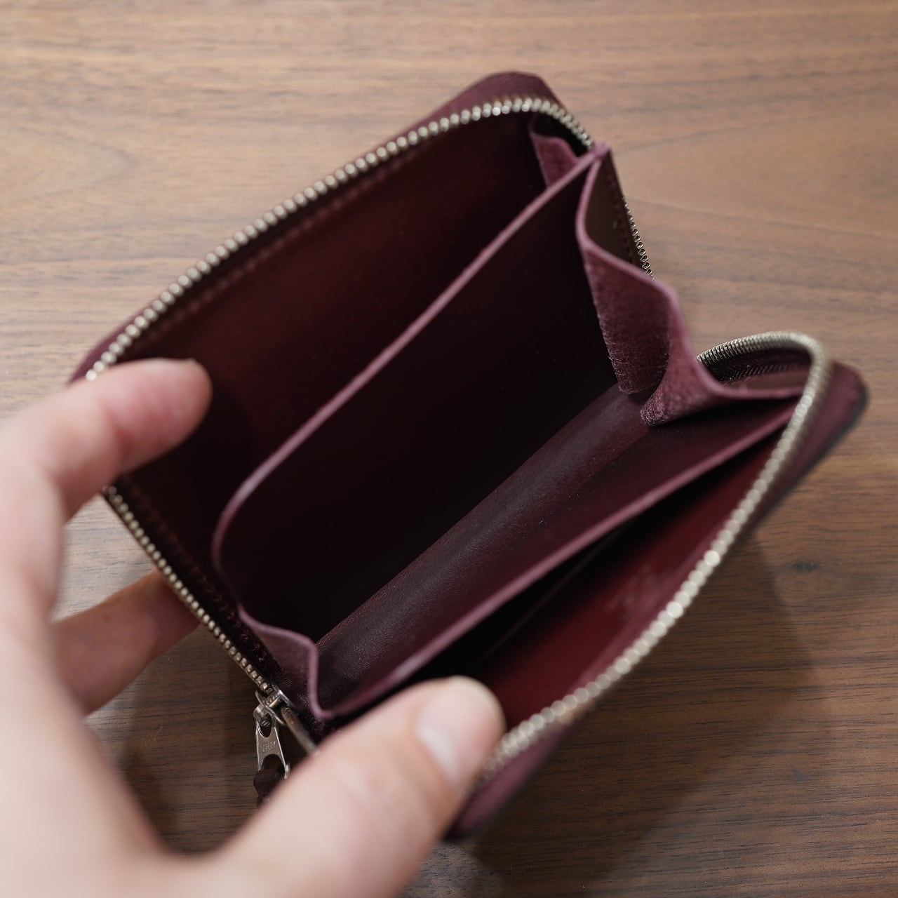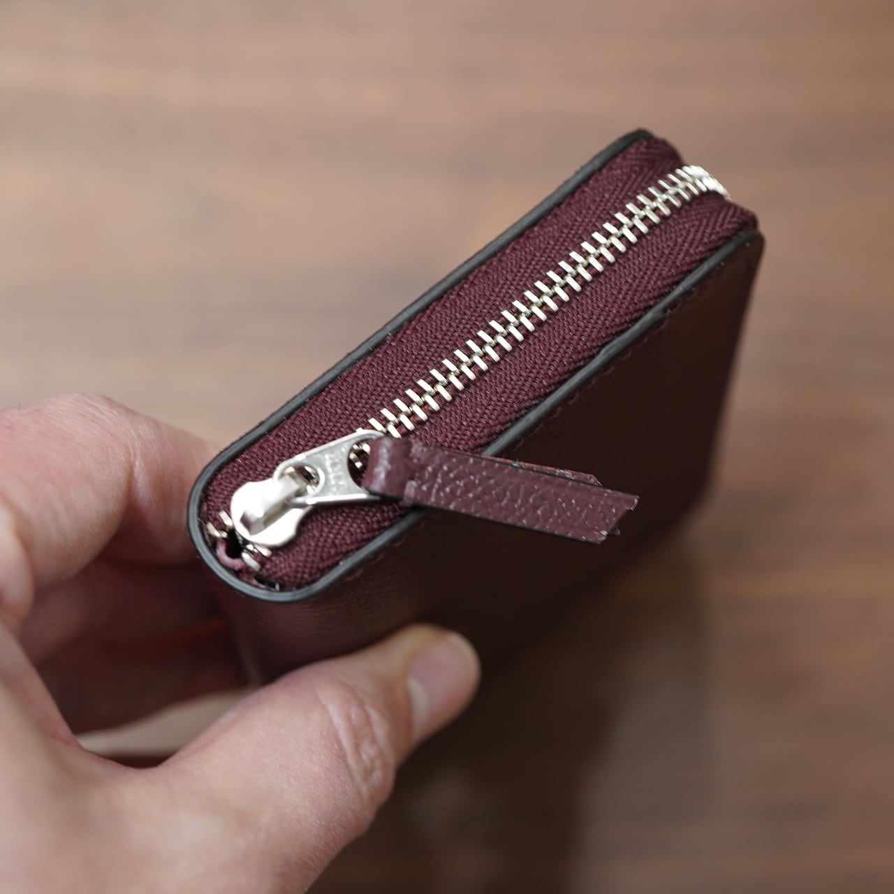 一般的なコンパクト財布に比べて、ラウンドファスナー財布的なフォルムの安定感と、シンプルながら特徴的な構造でしっかり収納力が高く、また軽やかなお財布に仕上がっています。