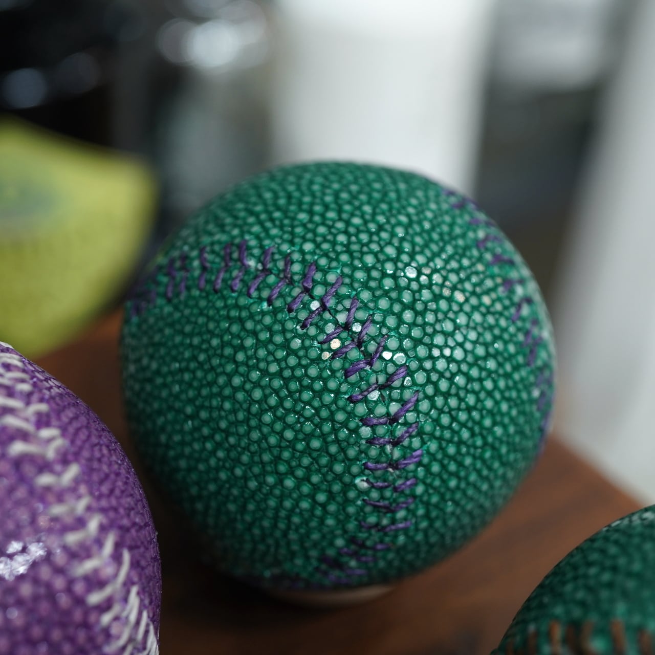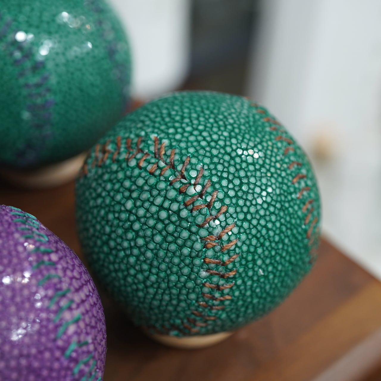 他ではなかなか見られないレザー野球ボール、是非どうぞ。