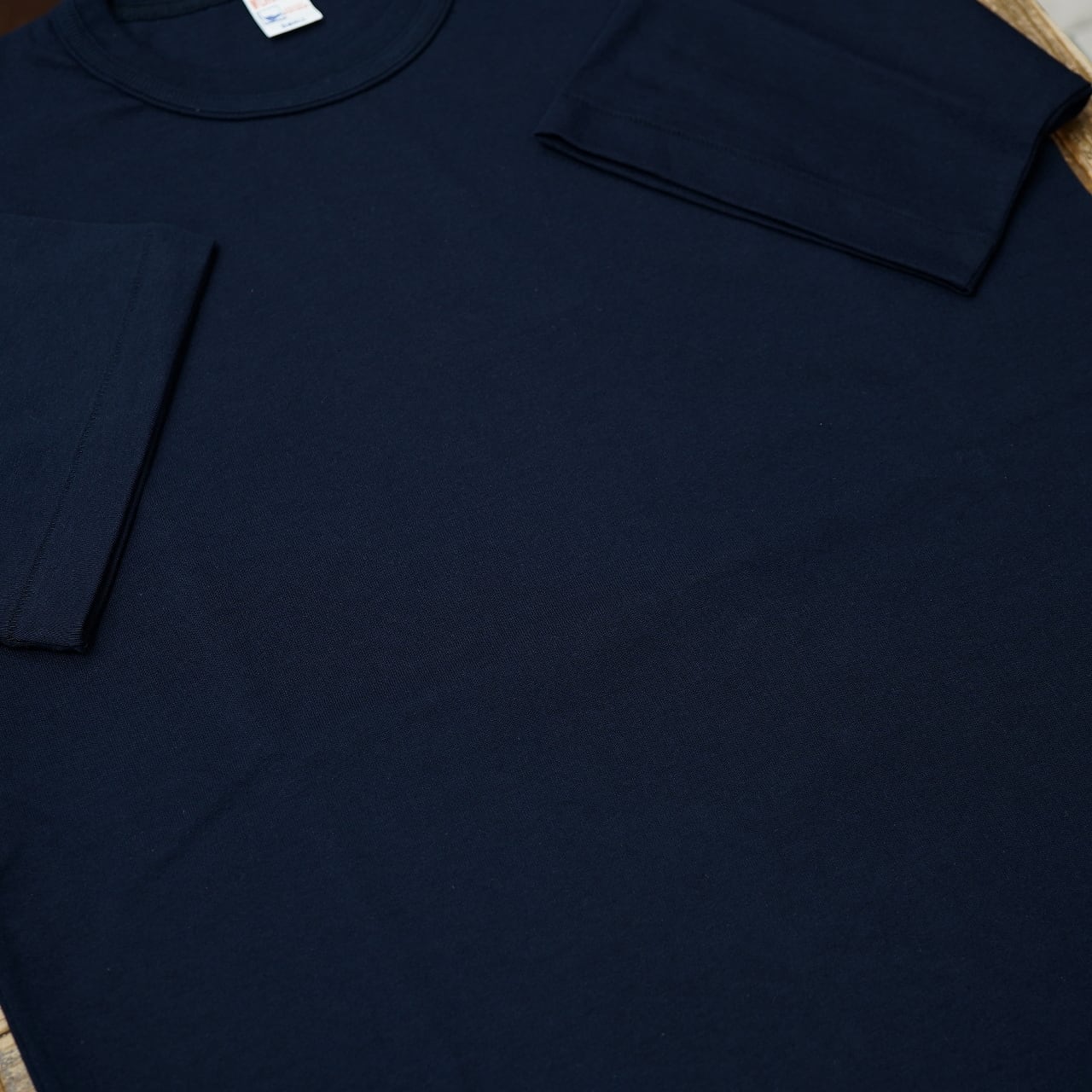 7ozほどでインナーでもアウターでもバランスの良い厚みと、ドライ目なコットン100%の吸湿発散良い心地よさ、長く着込んでどんどん着心地が良くなる系の素材感。