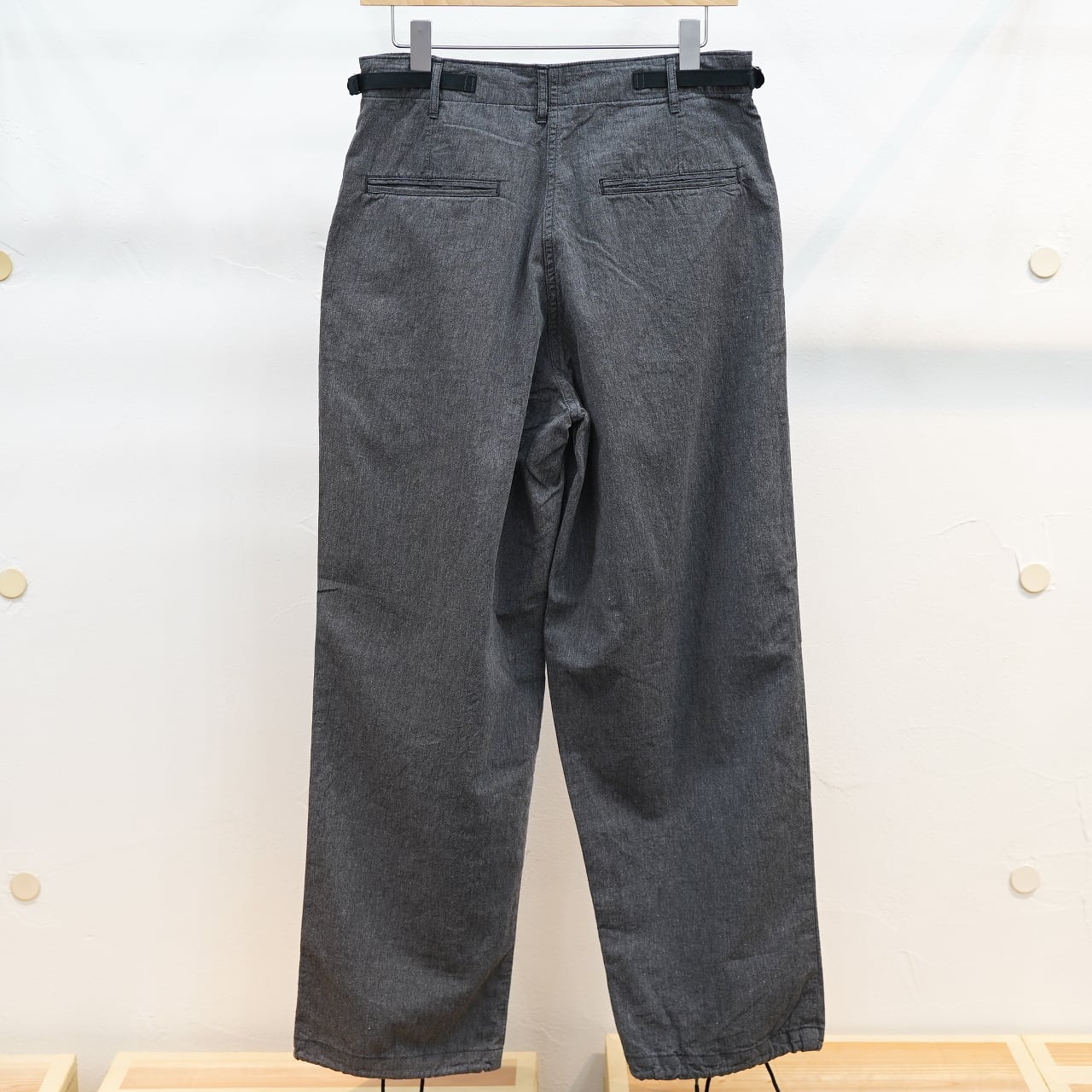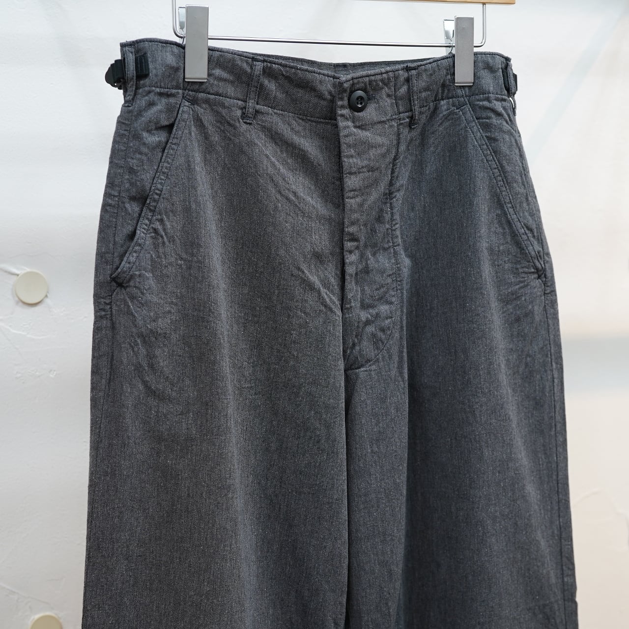 夏の定番としてシーズンによって微妙に変更がありながらも作られるFWPトラウザーは、初夏から真夏にかけてもとても涼しく心地よい質感。