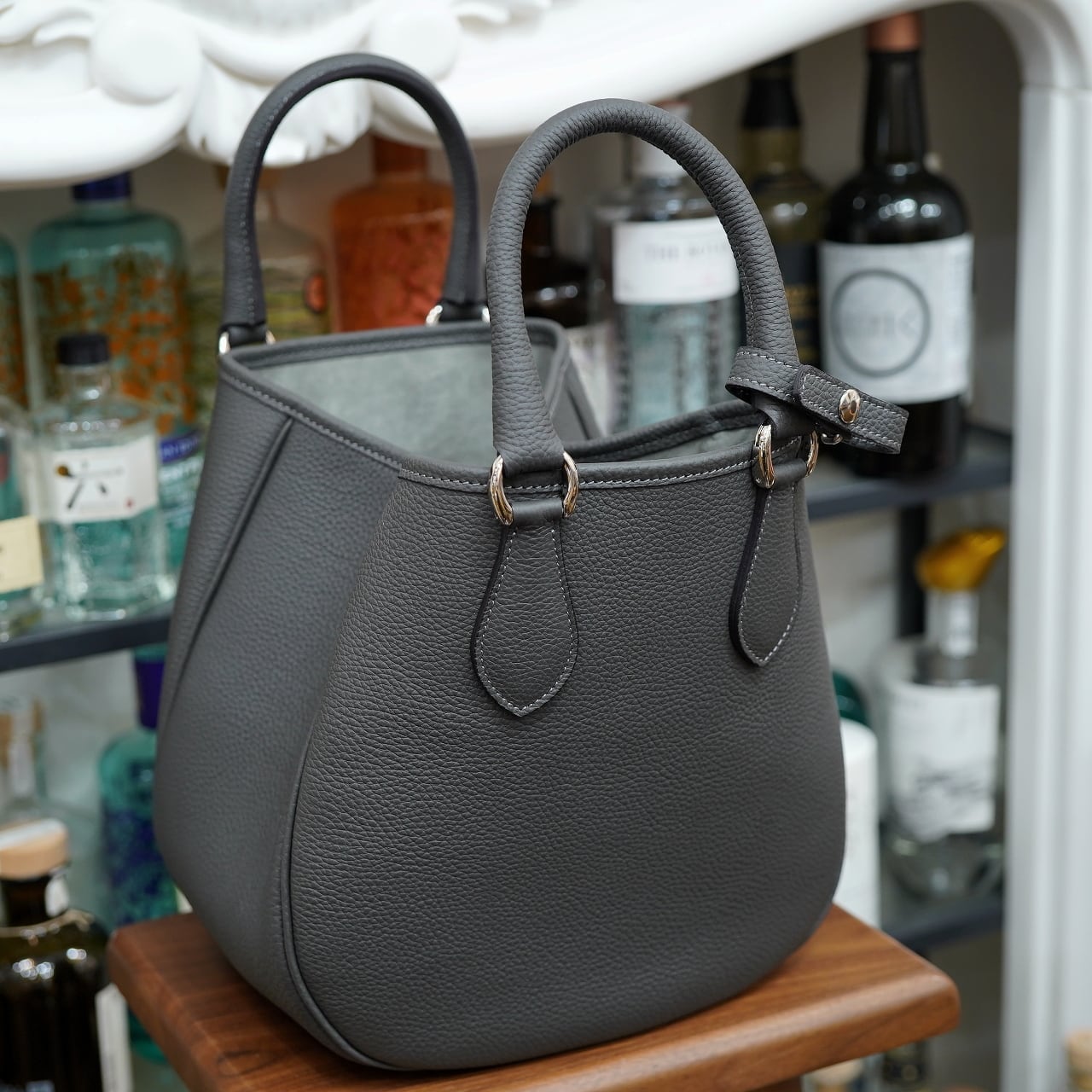 上質な海外皮革を始め、様々な革を厳選して使用し、ふっくらと味わい深く洗練されたバッグや、お財布などを生み出している神戸の革ブランドであるル・ボナーの、涙型でふっくらと可愛い独特なフォルムをしたハンドバッグ、プティトートです。