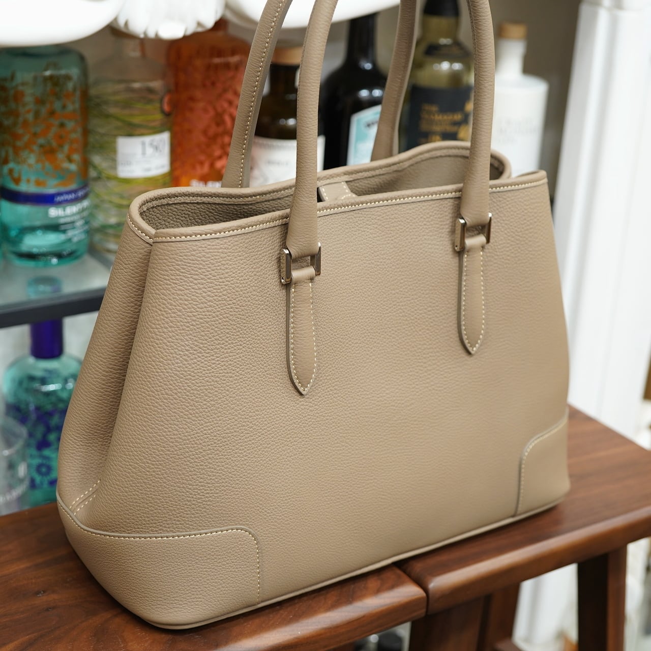 上質な海外皮革を始め、様々な革を厳選して使用し、ふっくらと味わい深く洗練されたバッグや、お財布などを生み出している神戸の革ブランドであるル・ボナーの、豊富な容量とかっちりとした優雅さのあるトートバッグ、タンクトートです。