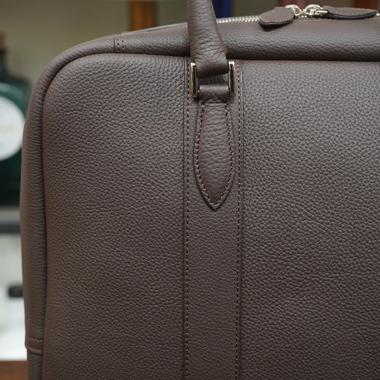 ふっくらと美しく作られたブリーフケースであるコンフェ・チュは、外装にドイツはペリンガー社のシュランケンカーフを贅沢に用いて、内装は総ピッグスエード仕上げとラグジュアリーさも溢れた、見栄えと実用性を兼ね備えたファスナー式ブリーフケースです。